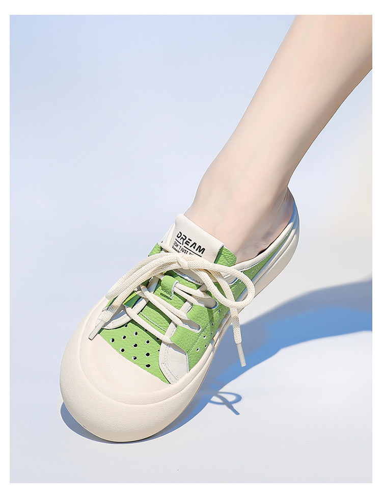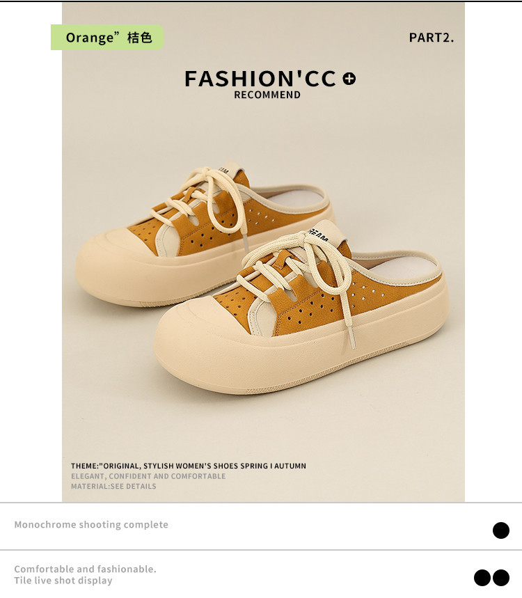 정품 가죽 슬리퍼 여성 2025 년 여름 새 스타일 소녀 아웃웨어 유행 샌들과 슬리퍼 통기성 반 슬리퍼 빈티지 비치 슈즈