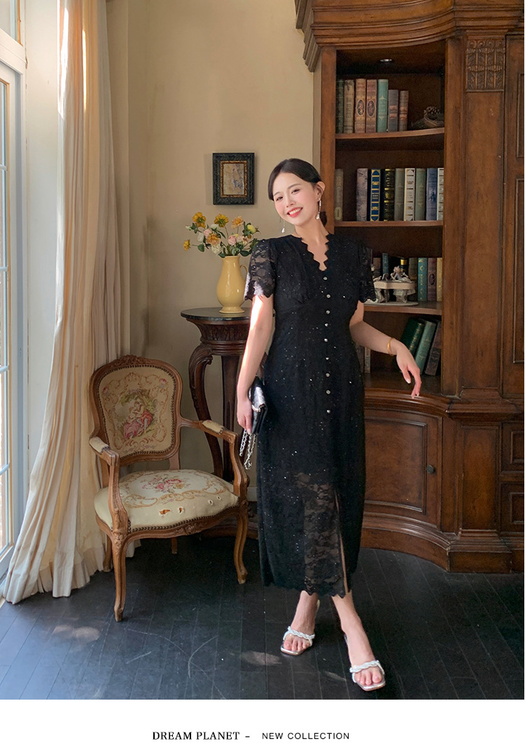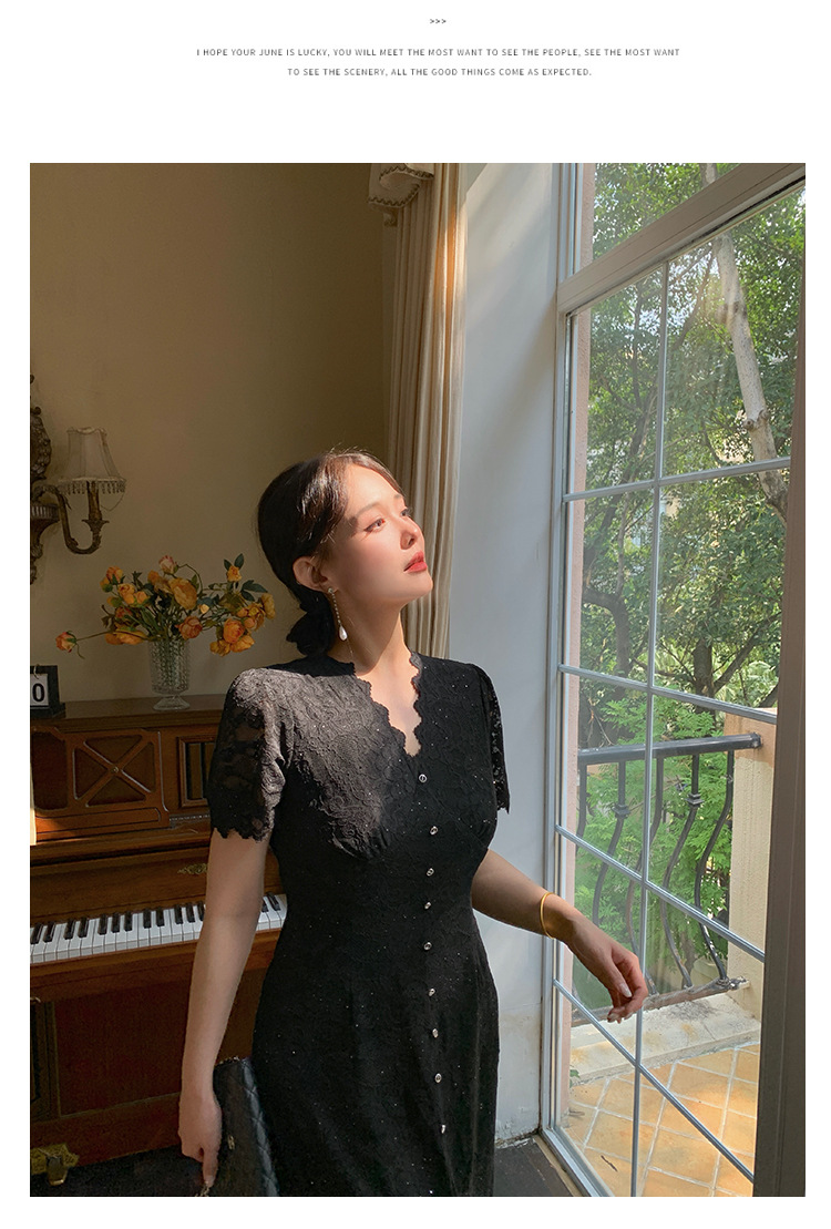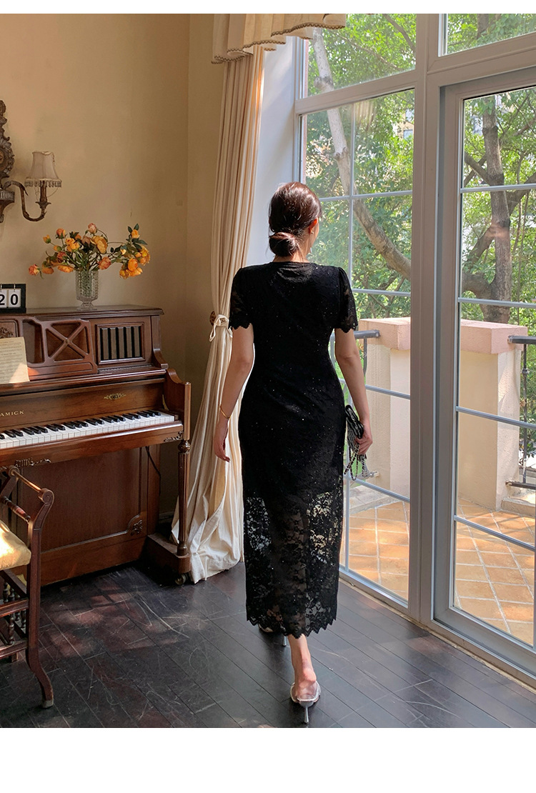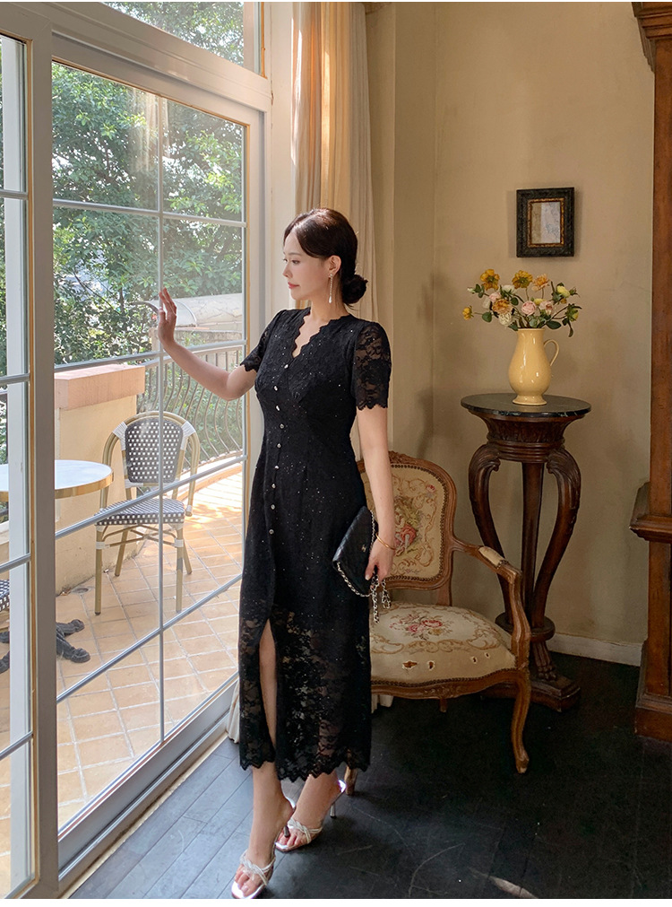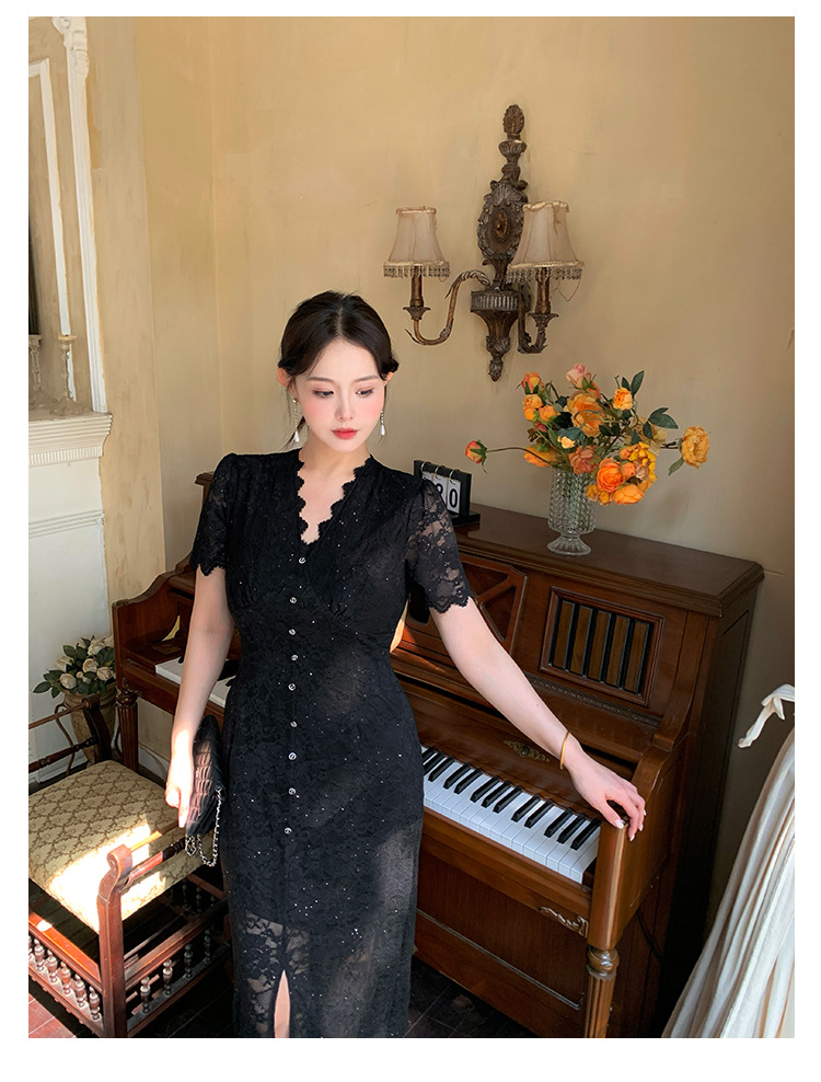 플러스 사이즈 여성의 하이 엔드 느낌 사교계 레이스 엉덩이 원피스 프랑스 섹시한 허리 원피스 2096
