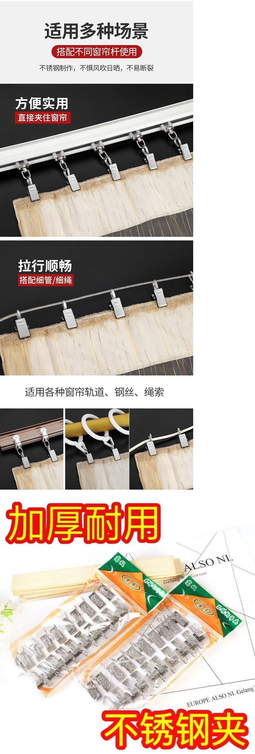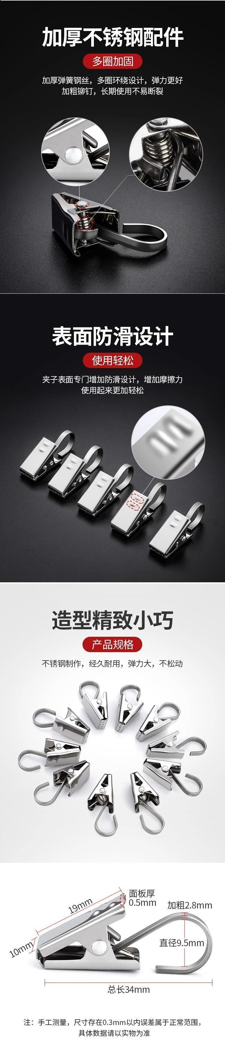 두꺼운 스테인레스 스틸 커튼 클립, 강력한 후크 버클 액세서리, 가정용 샤워 커튼 클립, 구식 톱니 모양의 작은 클립