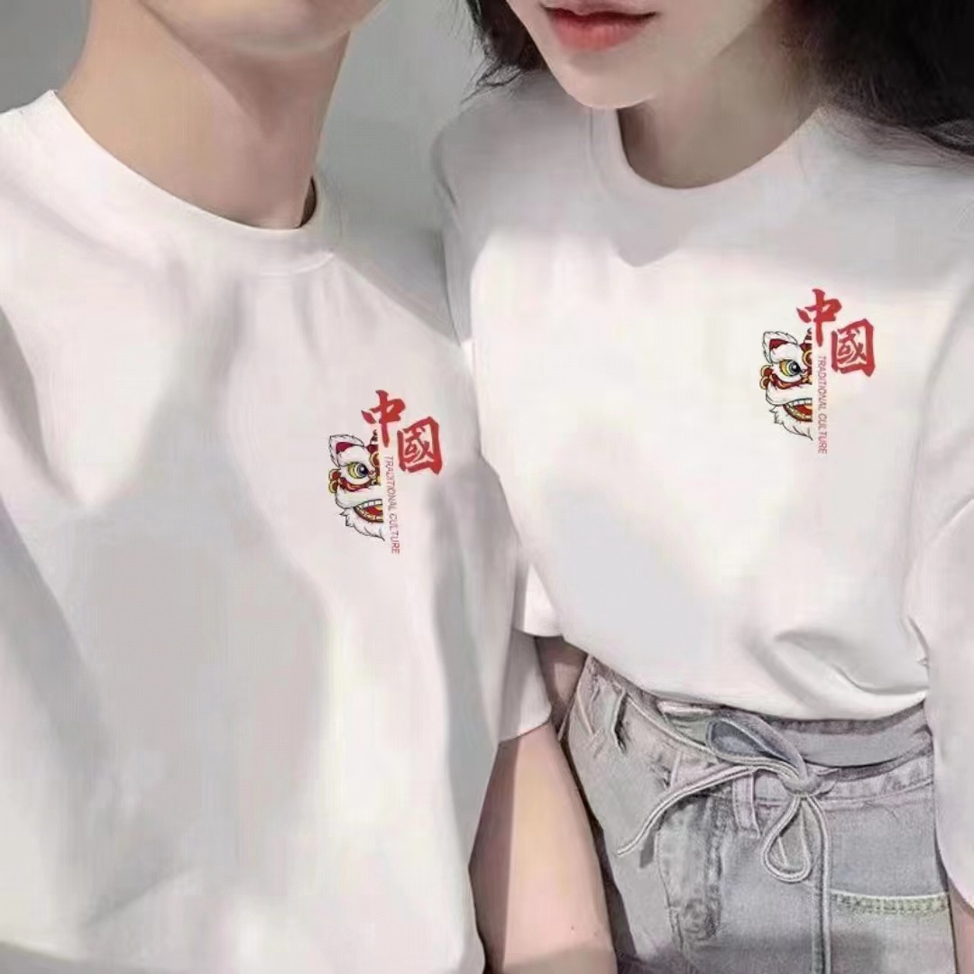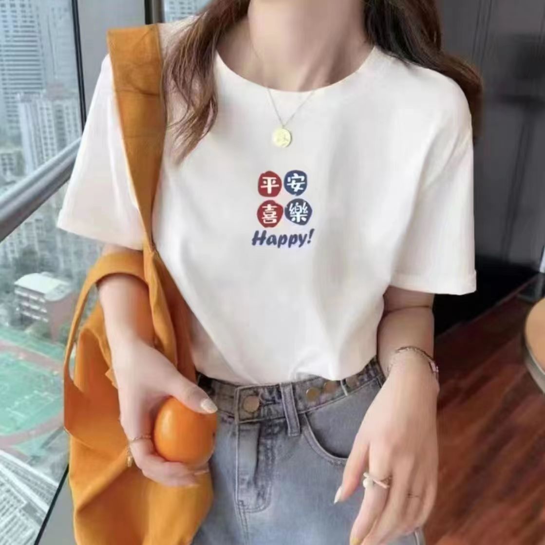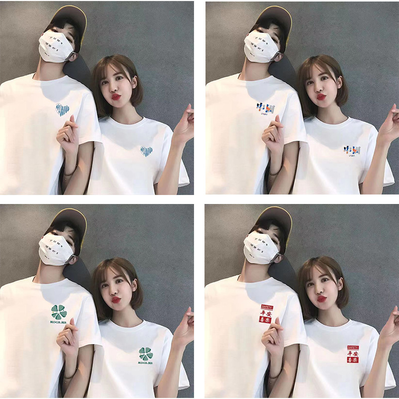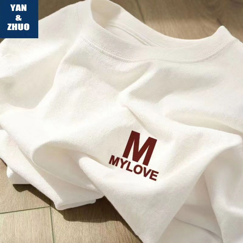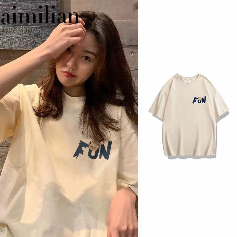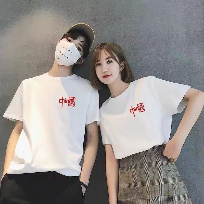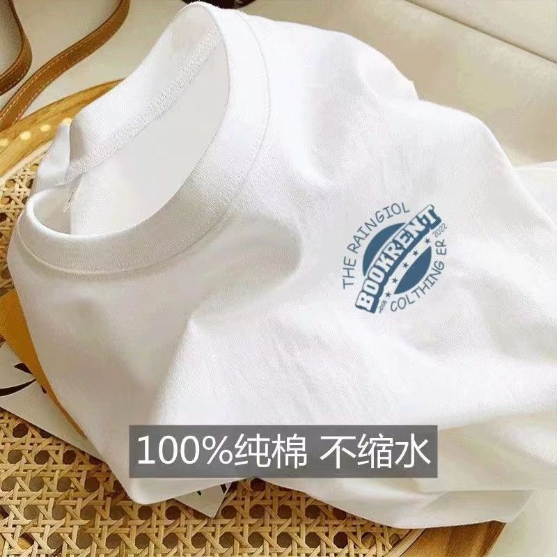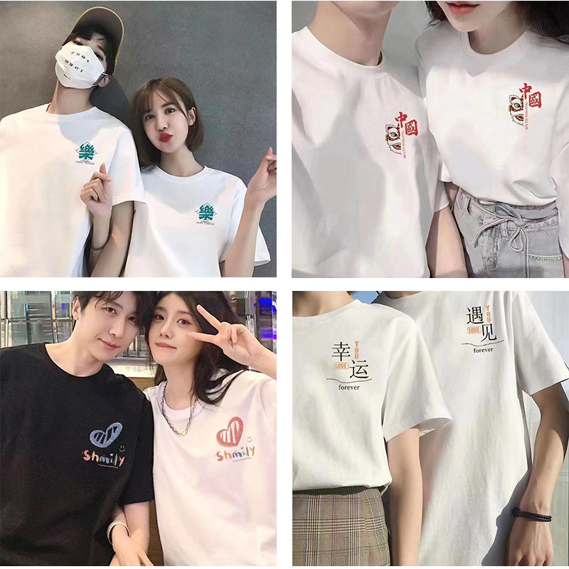 퓨어 코튼 반팔 티셔츠 여성용 뉴 숄더 레터 인쇄 반소매 남녀 스키니 티셔츠 커플 티셔츠스토어 가기