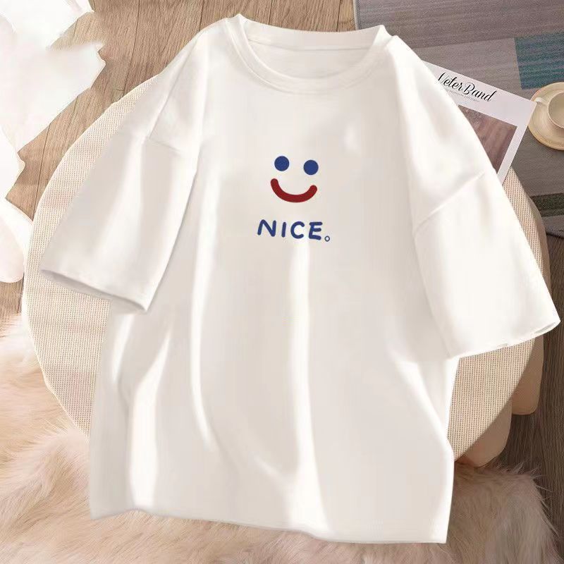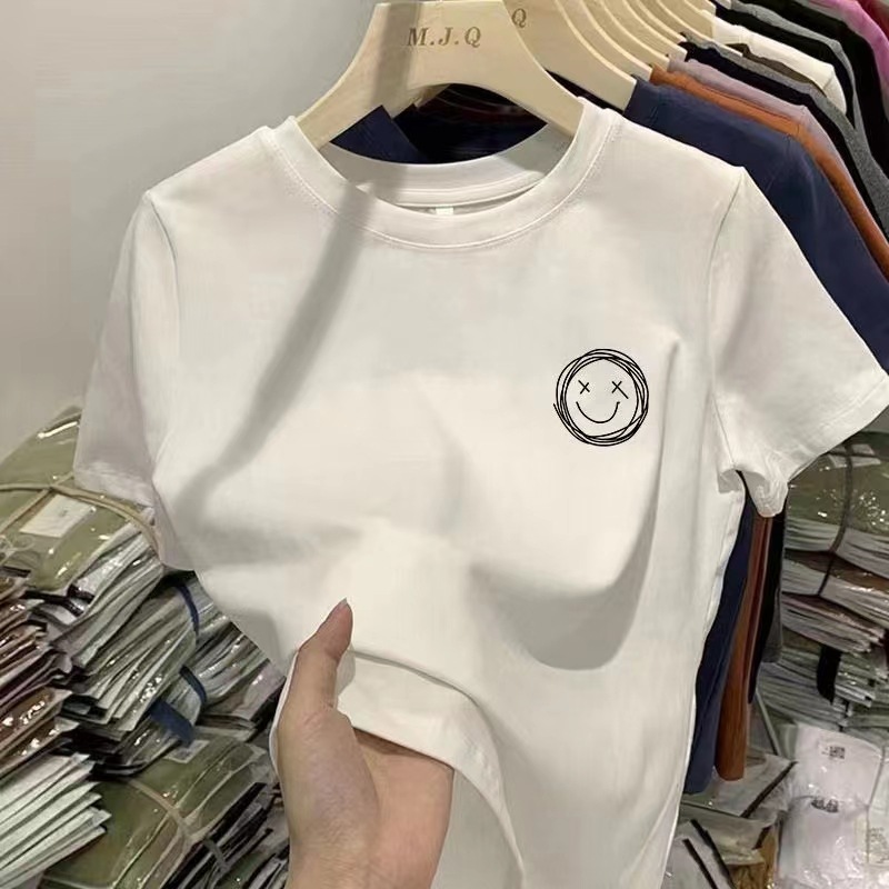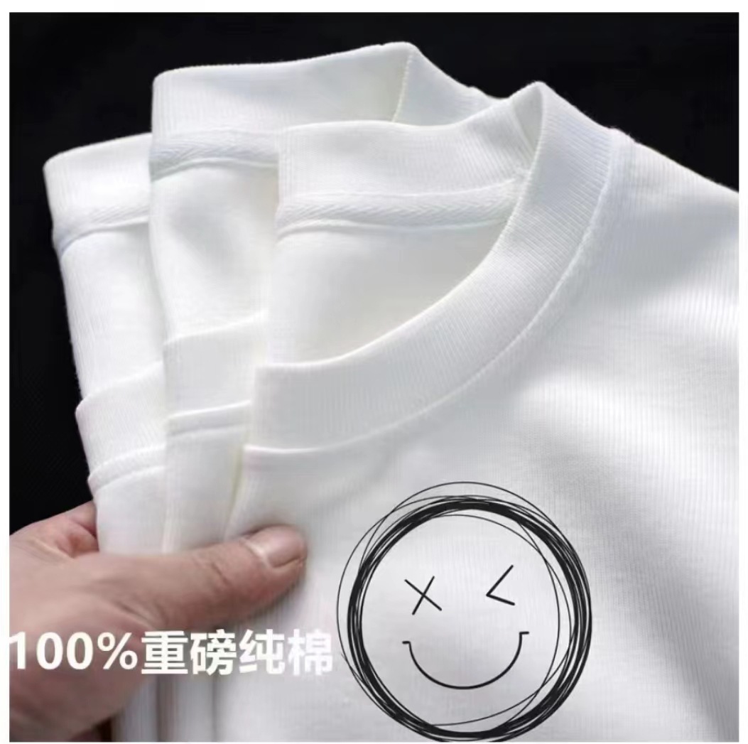 • 웃는 얼굴이 있는 흰색 200g 티셔츠