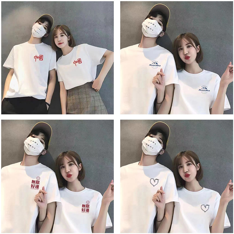 퓨어 코튼 반팔 티셔츠 여성용 뉴 숄더 레터 인쇄 반소매 남녀 스키니 티셔츠 커플 티셔츠