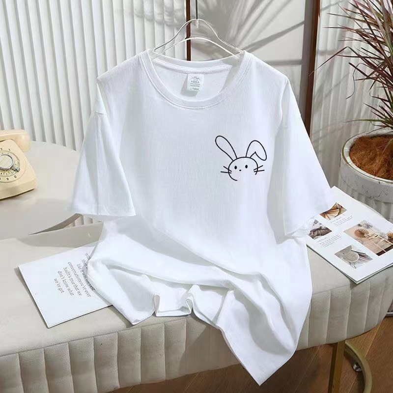 • 흰색 200g 티셔츠 작은 접힌 귀 토끼