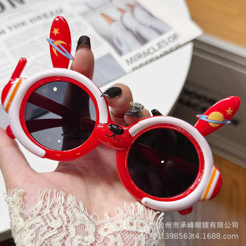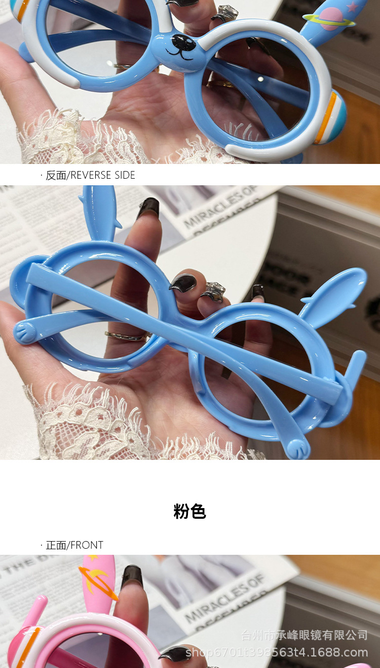 귀여운 소녀 만화 태양 보호 선글라스 어린이 토끼 안티 UV 아기 여행 사진 선글라스 도매