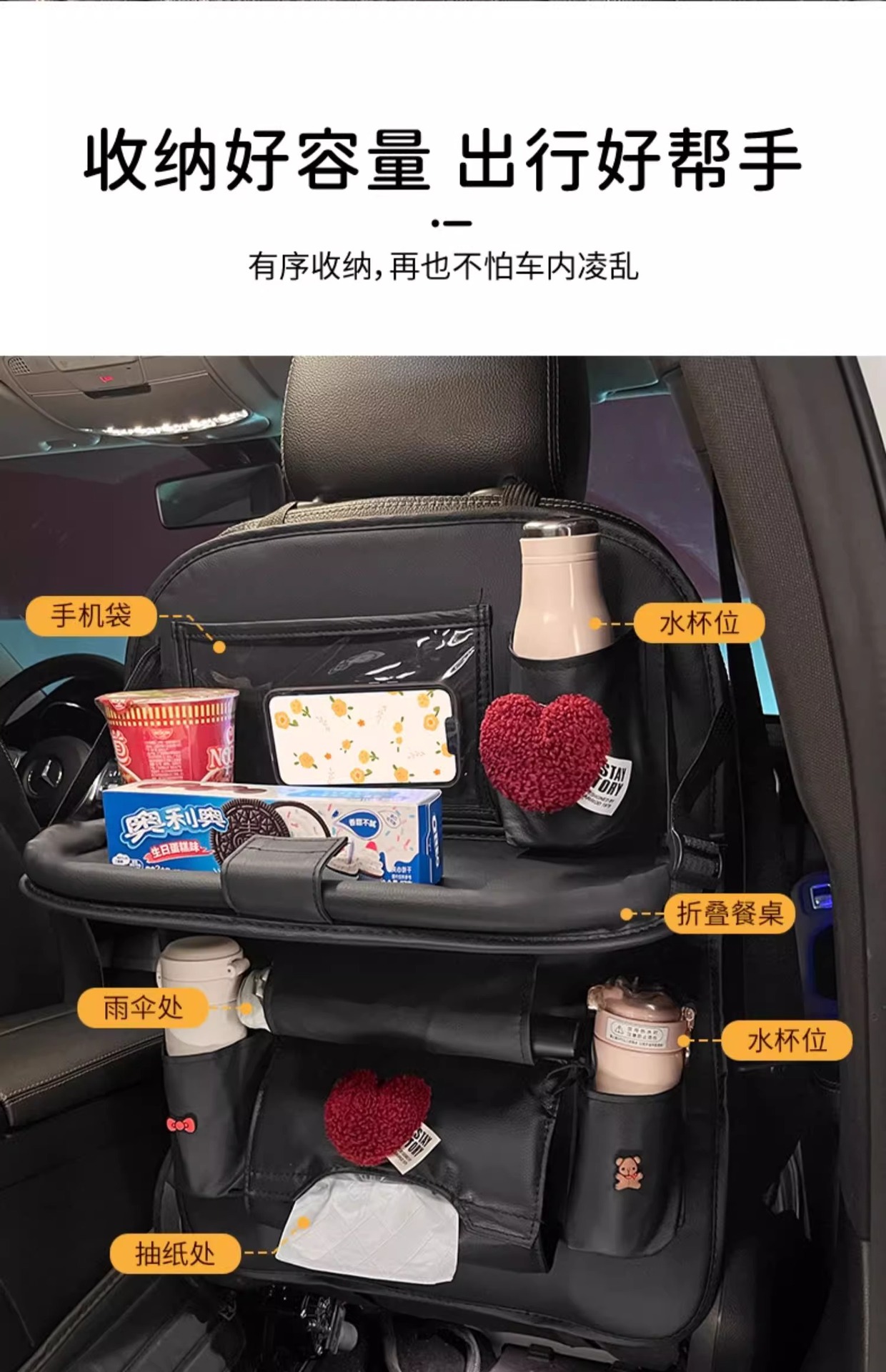 차량용 소형 테이블, 어린이 식탁, 후면 수납 선반, 여성용 다기능 접이식 시트 등받이 수납 걸이 가방