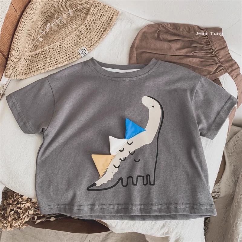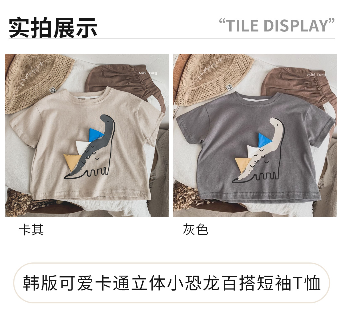 한국 여름 새로운 만화 입체 작은 공룡 디자인 반팔 티셔츠 남성과 여성 캐주얼 다목적 귀여운 티셔츠스토어 가기