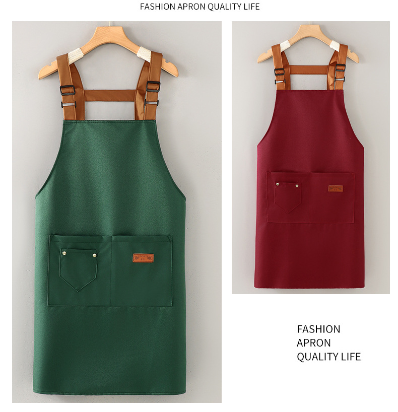 국경 간 간단한 단색 가정용 앞치마 세련된 커피 숍 방수 및 내유성 작업복 앞치마 맞춤형 로고 광고