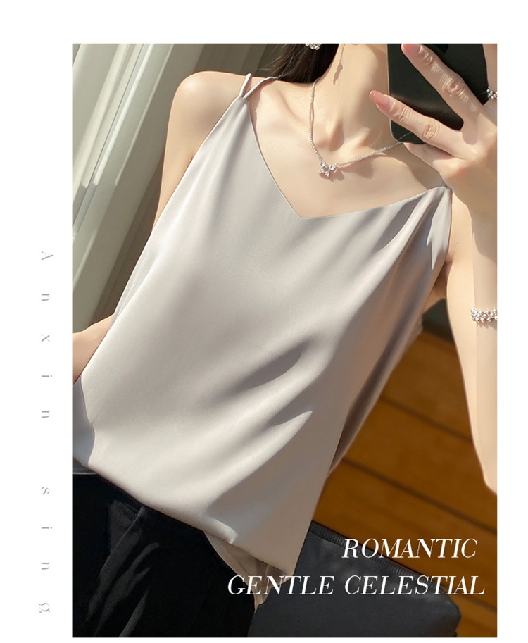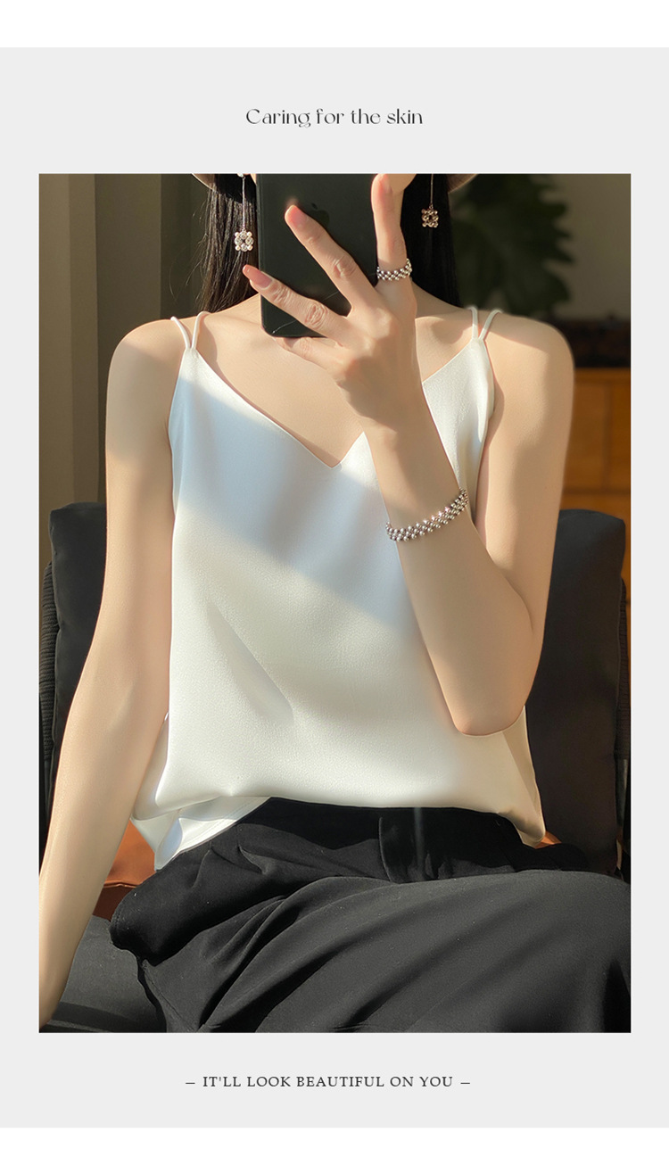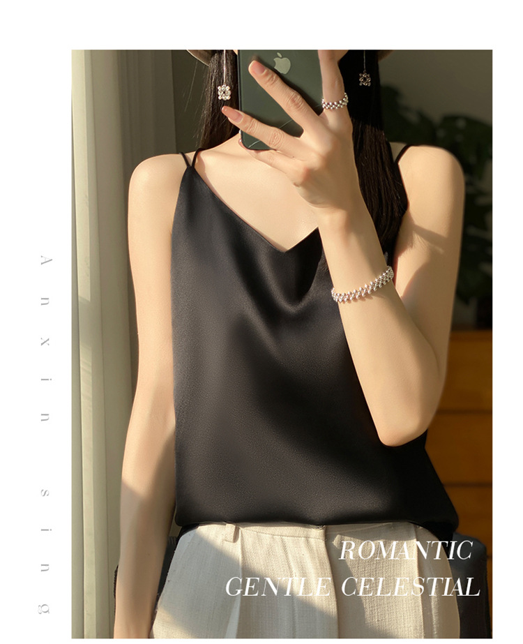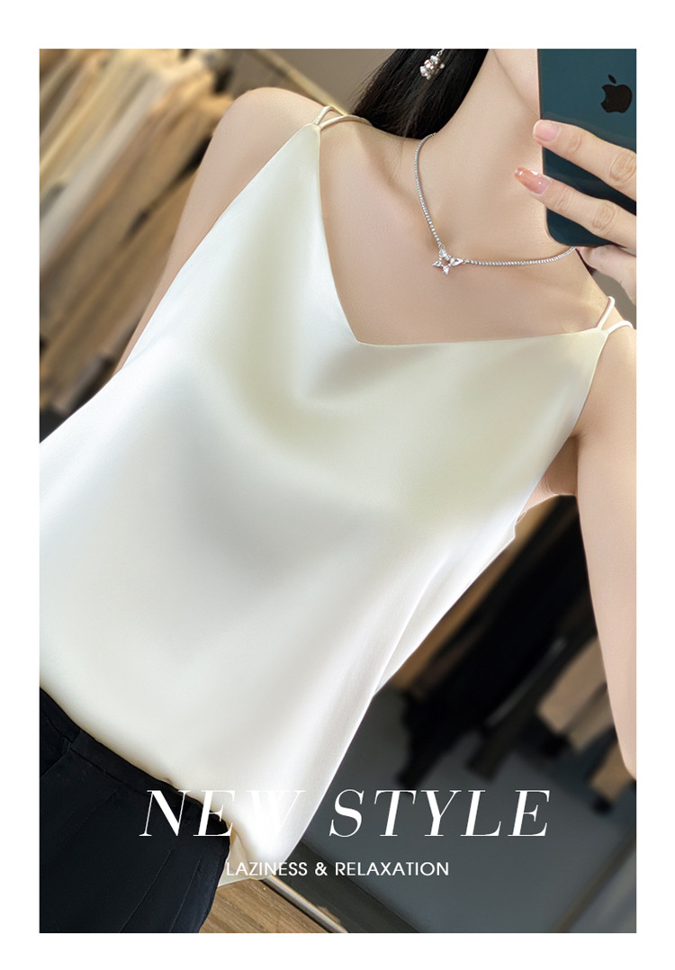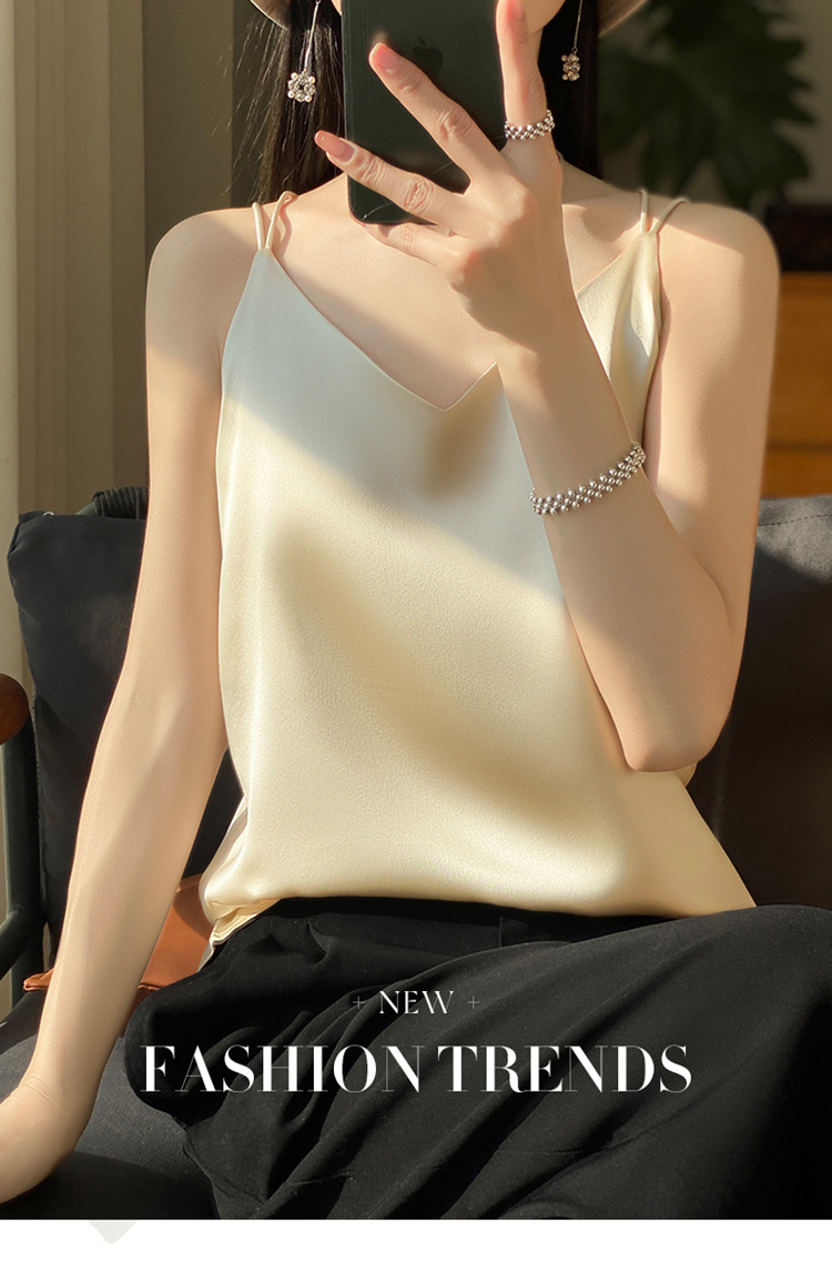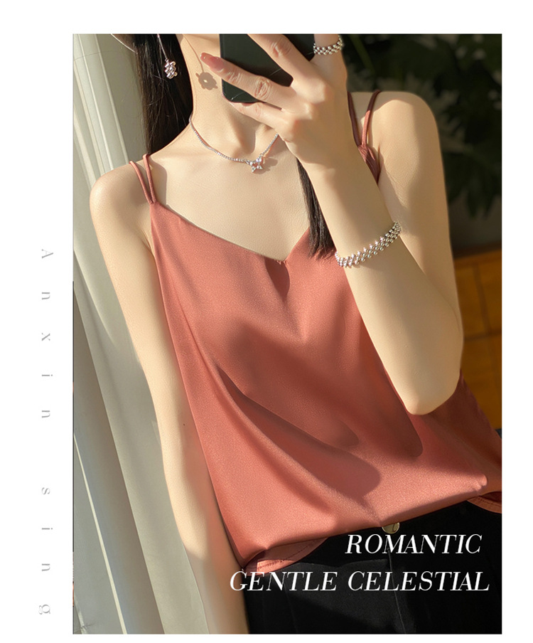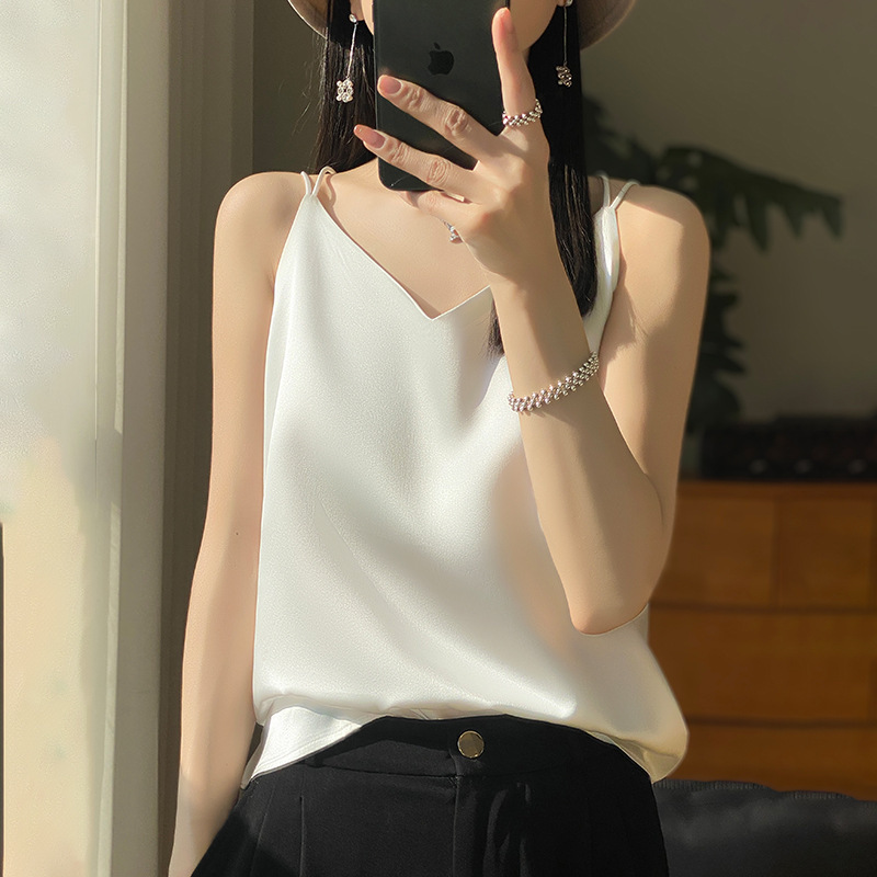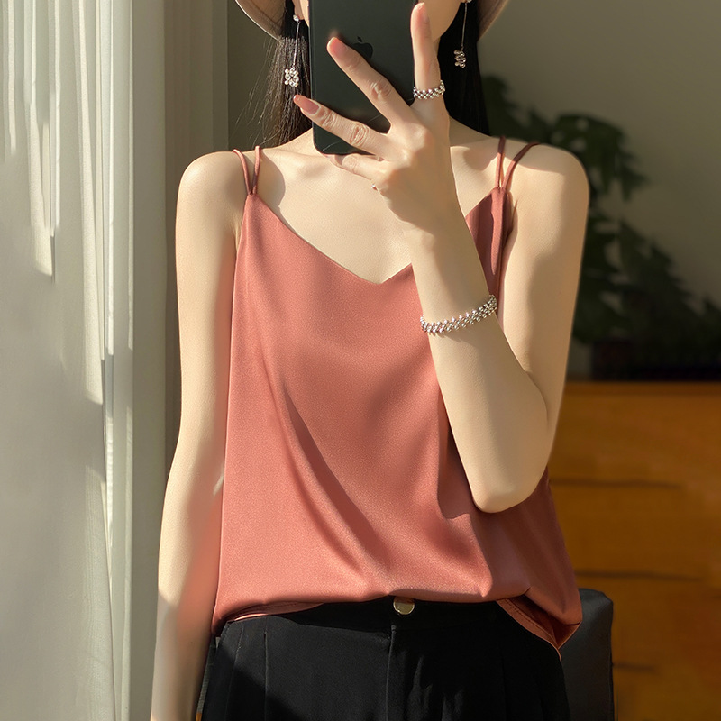 가벼운 럭셔리 새틴 어깨 작은 카미 솔 조끼 여성의 여름 새로운 스타일 아우터웨어 세트 내부 패션 스타일리시한베이스 탑스토어 가기