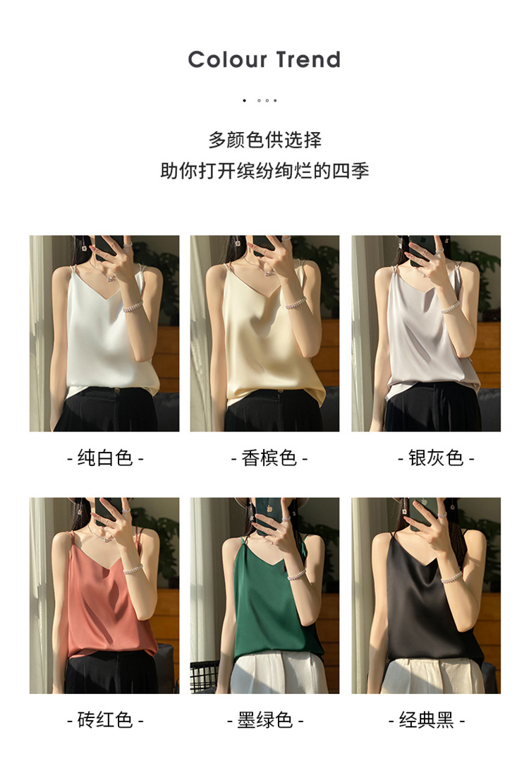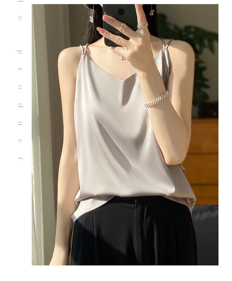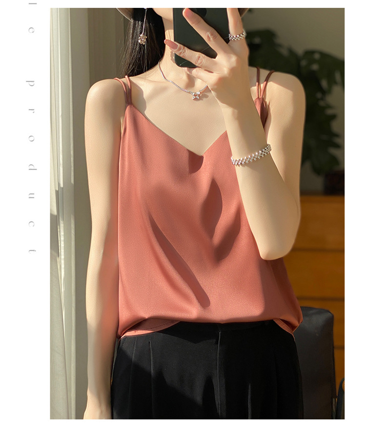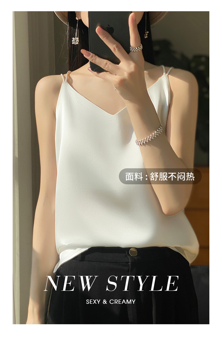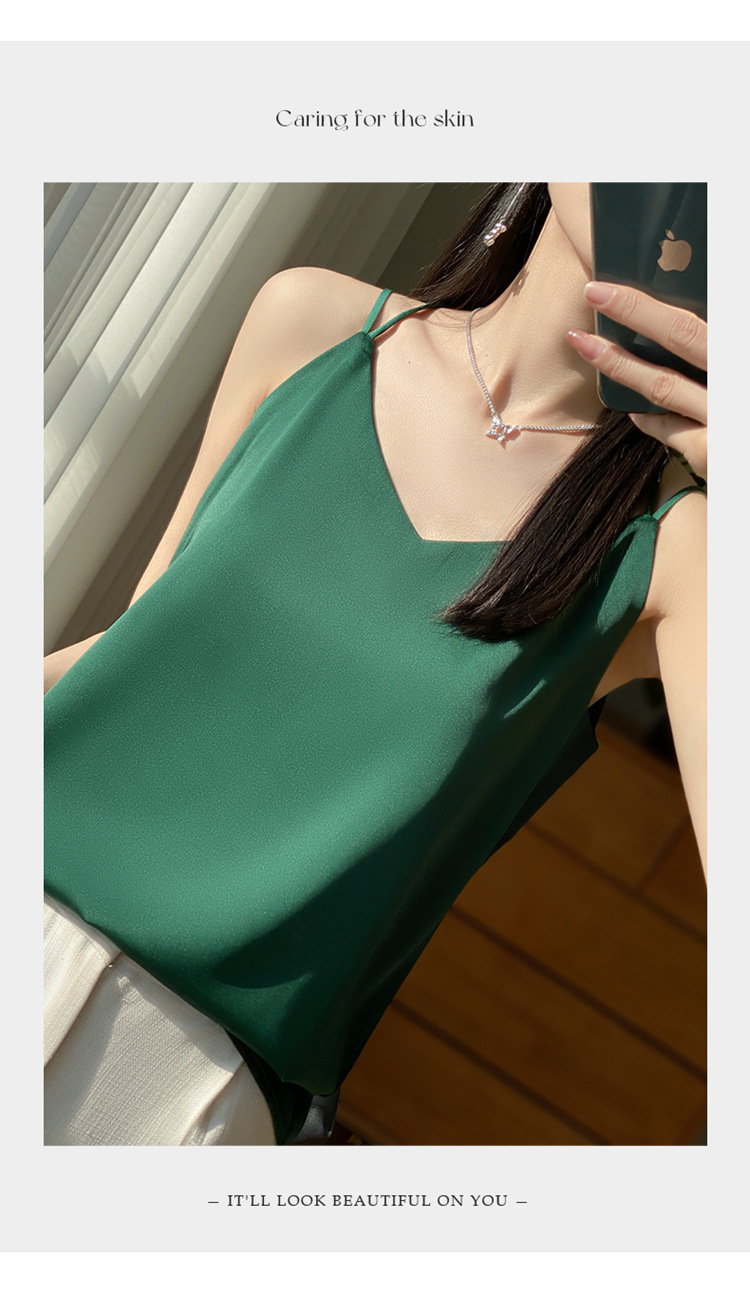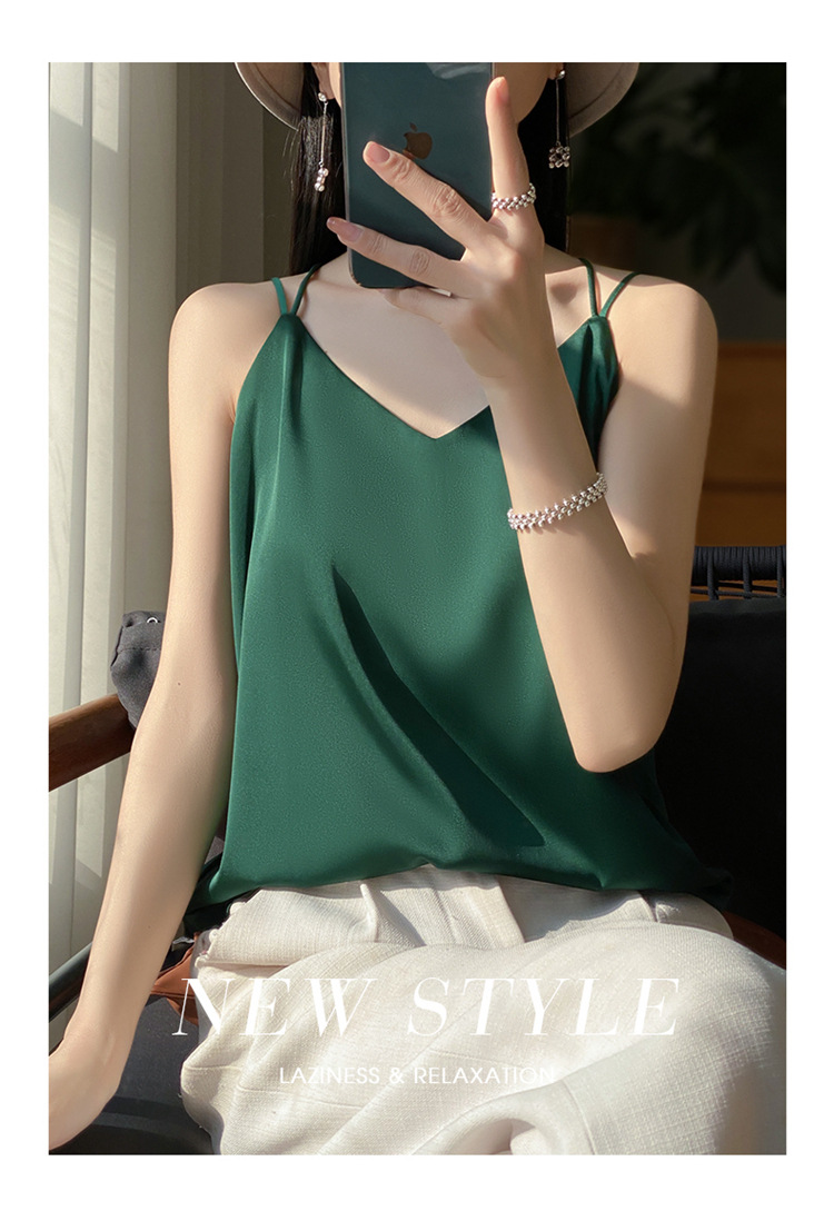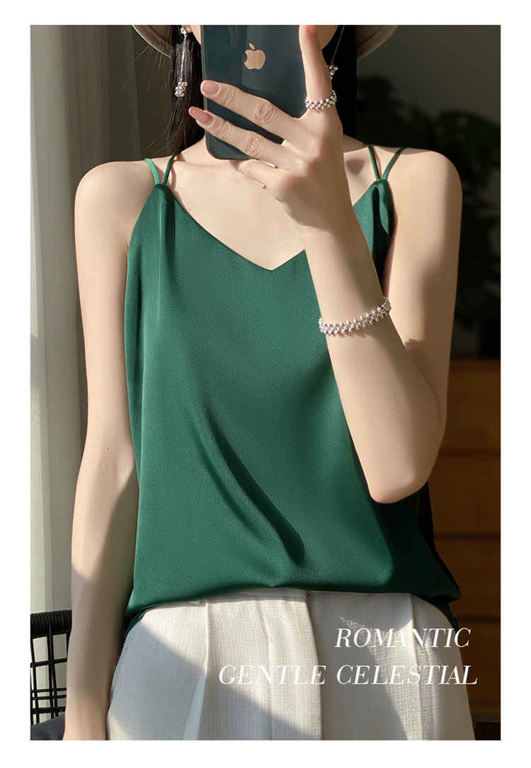 가벼운 럭셔리 새틴 어깨 작은 카미 솔 조끼 여성의 여름 새로운 스타일 아우터웨어 세트 내부 패션 스타일리시한베이스 탑스토어 가기