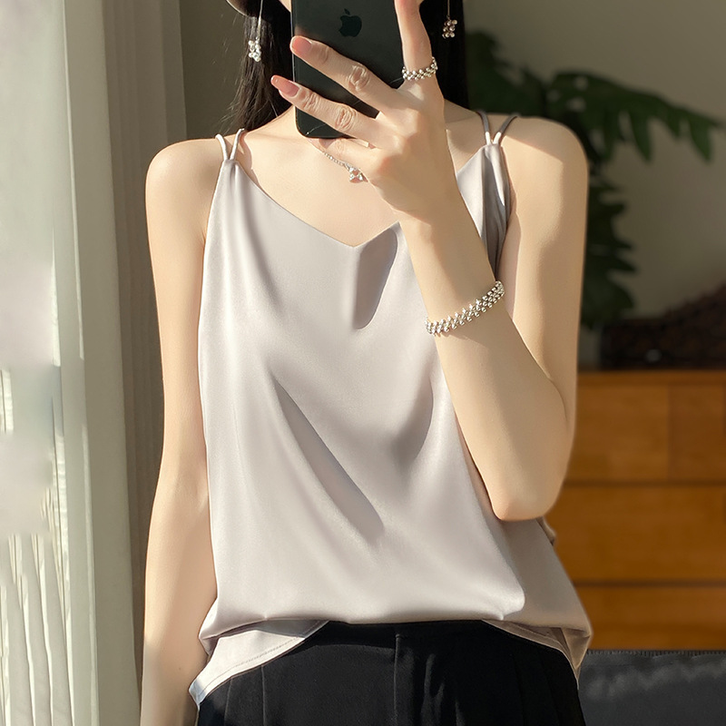 가벼운 럭셔리 새틴 어깨 작은 카미 솔 조끼 여성의 여름 새로운 스타일 아우터웨어 세트 내부 패션 스타일리시한베이스 탑