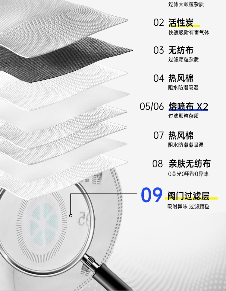 • 밸브 + 스폰지 스트립 + 독립 포장이 포함된 성인용 KN95