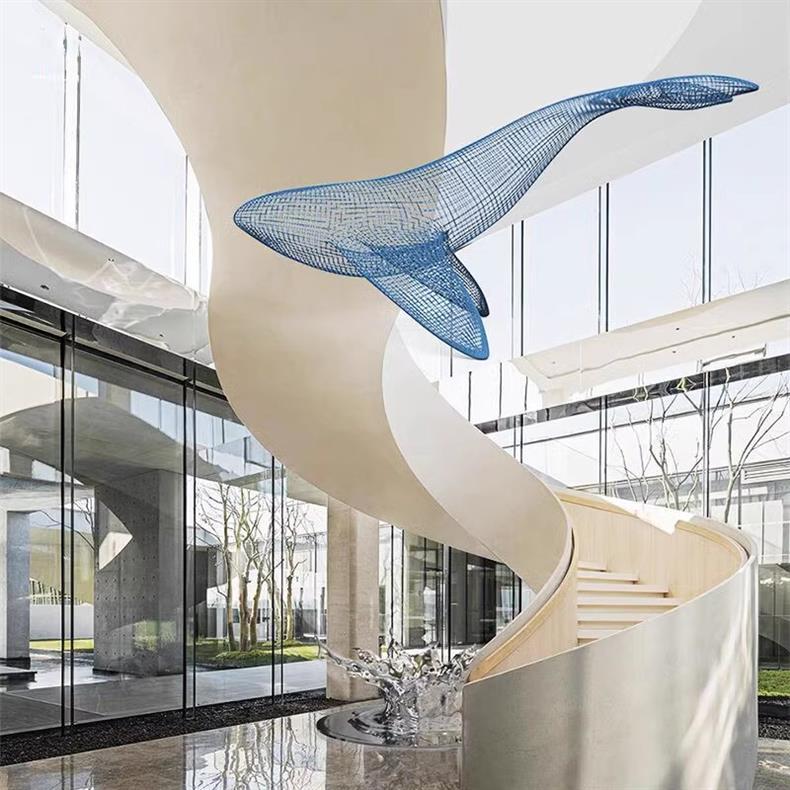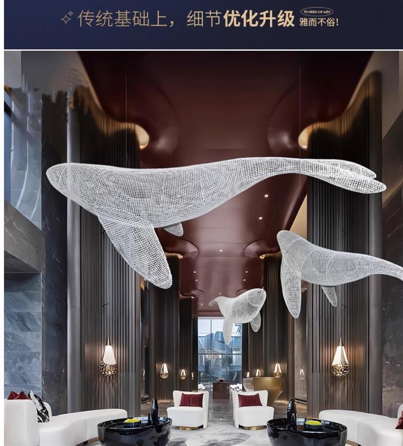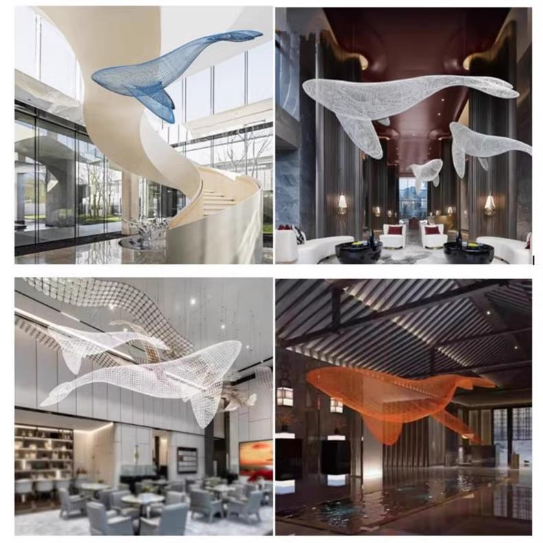 철 교수형 쇼핑몰 중庭 복도 금속 고래 펜던트 실내 조각 장식품 호텔 로비 장식 펜던트