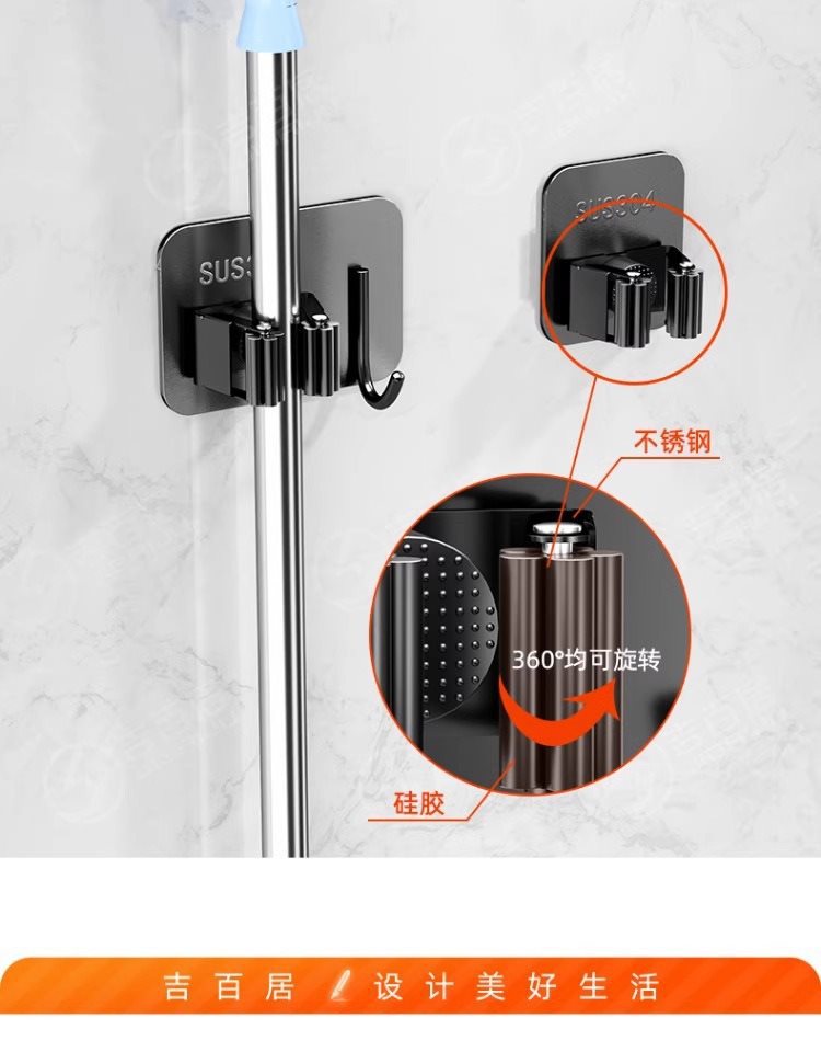 공장 공급 욕실 비 천공 벽 걸레 후크 홀더 걸레 클립 다기능 빗자루 랙