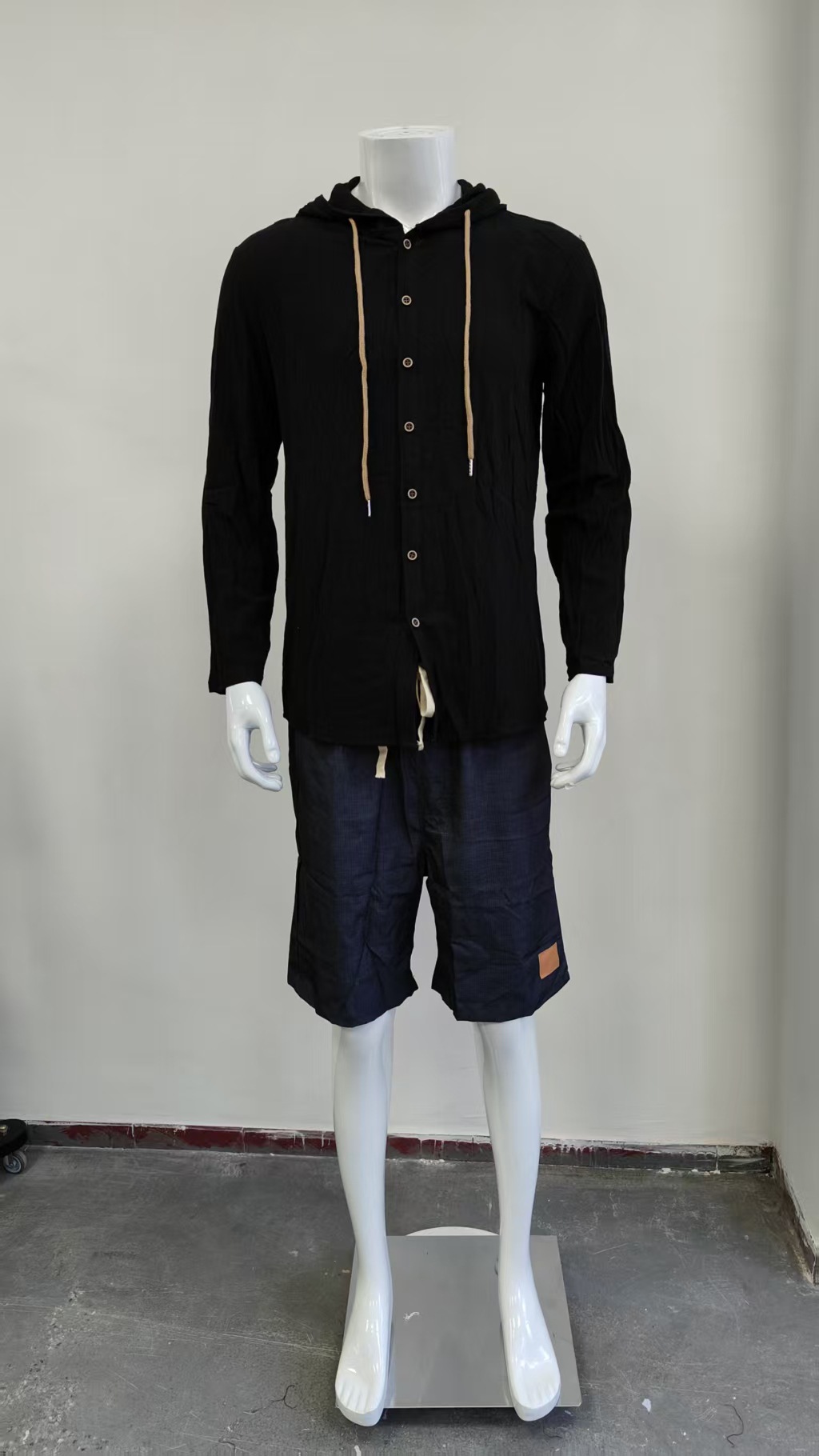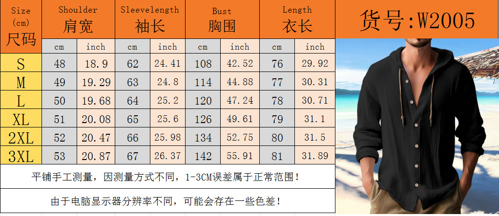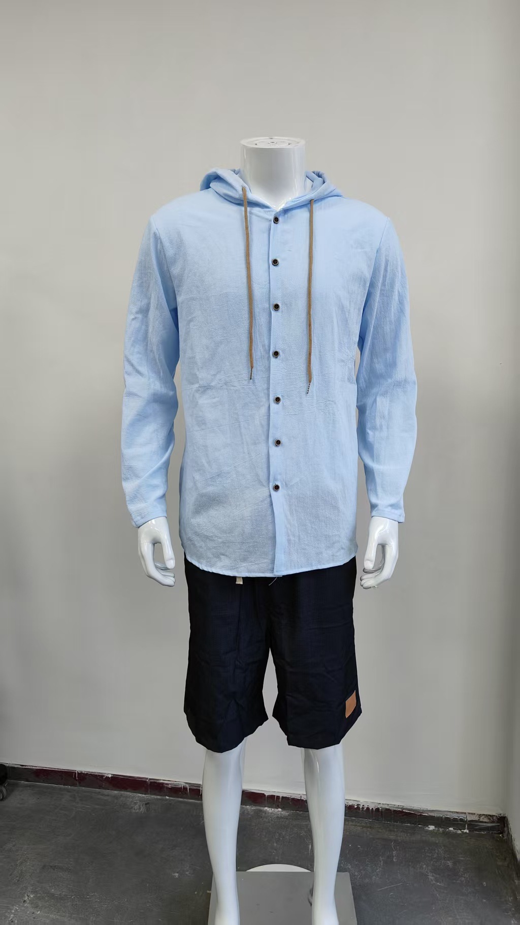 국경 간 Amazon 2025 새로운 패션 봄 여름 남성 후드 셔츠 솔리드 컬러 코튼 린넨 캐주얼 긴팔 탑.