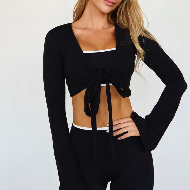 2025 새로운 요가복 유럽과 미국의 아마존 긴팔 탑 크로스 스트랩 블라우스 다용도 편안한 스포츠 탑