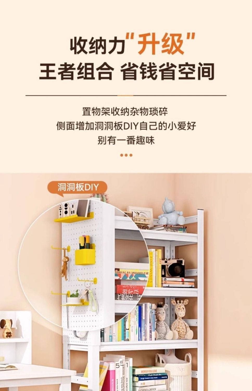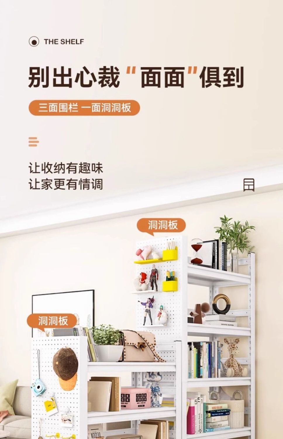 • 천공판 액세서리 접이식 대형 선반 [크림 화이트]