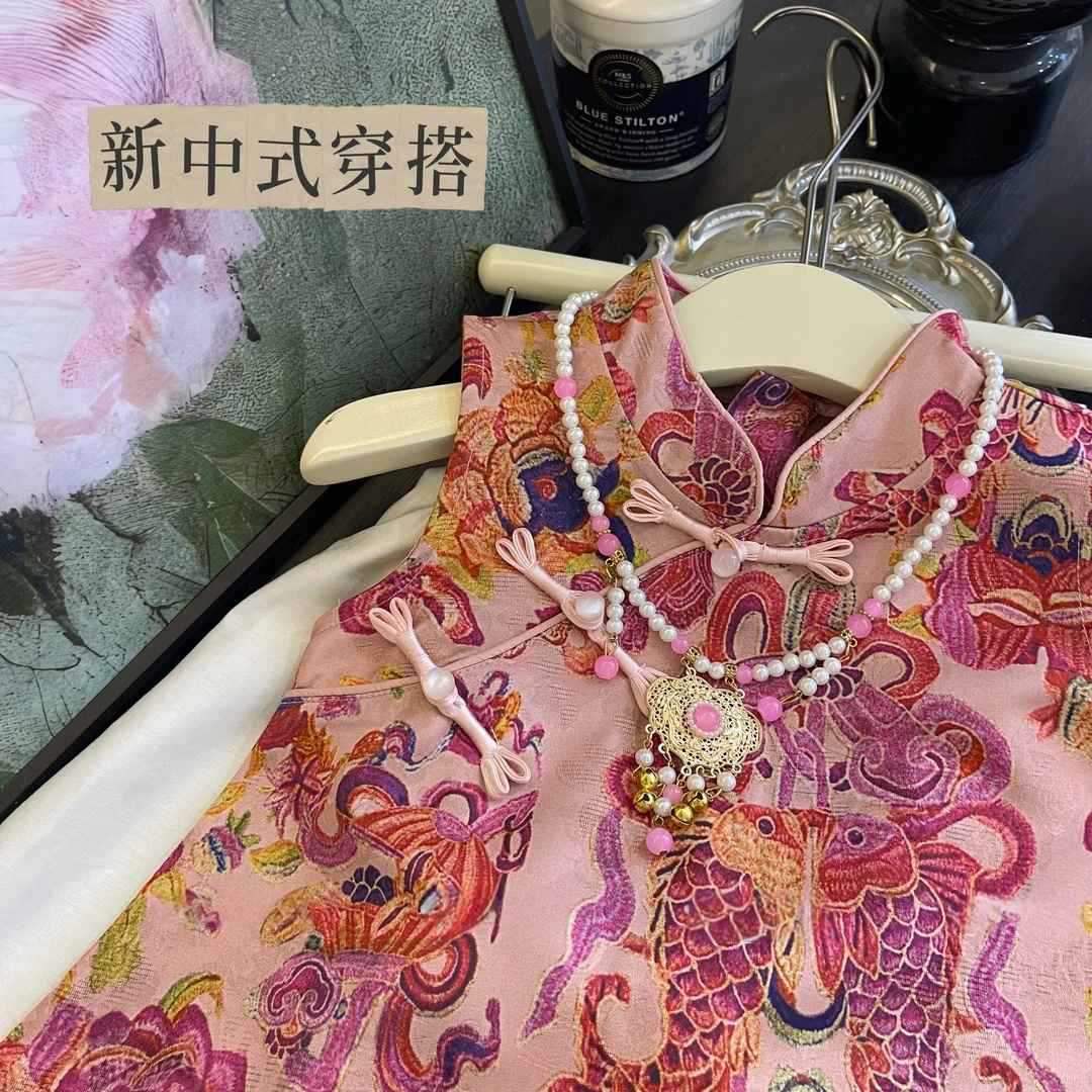Guofeng Girls 세트 2025 새로운 스타일 서양식 소녀 여름 버클 어린이 소녀 골동품 새로운 중국 스타일 투피스 세트스토어 가기