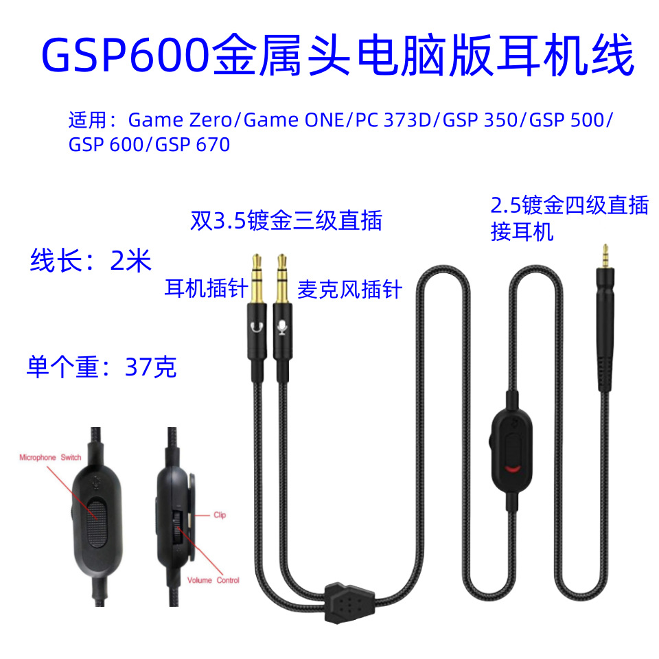 • GSP 컴퓨터 버전 헤드폰 케이블 메탈 블랙 플러그