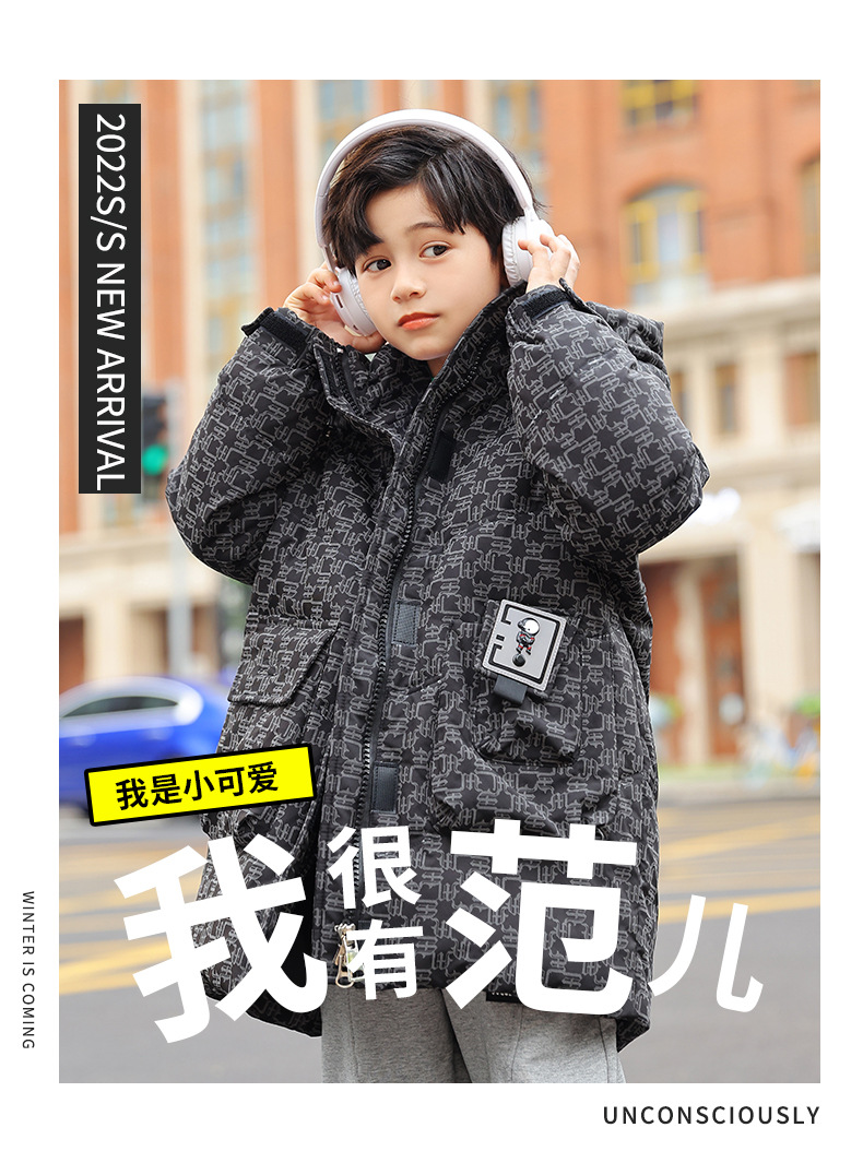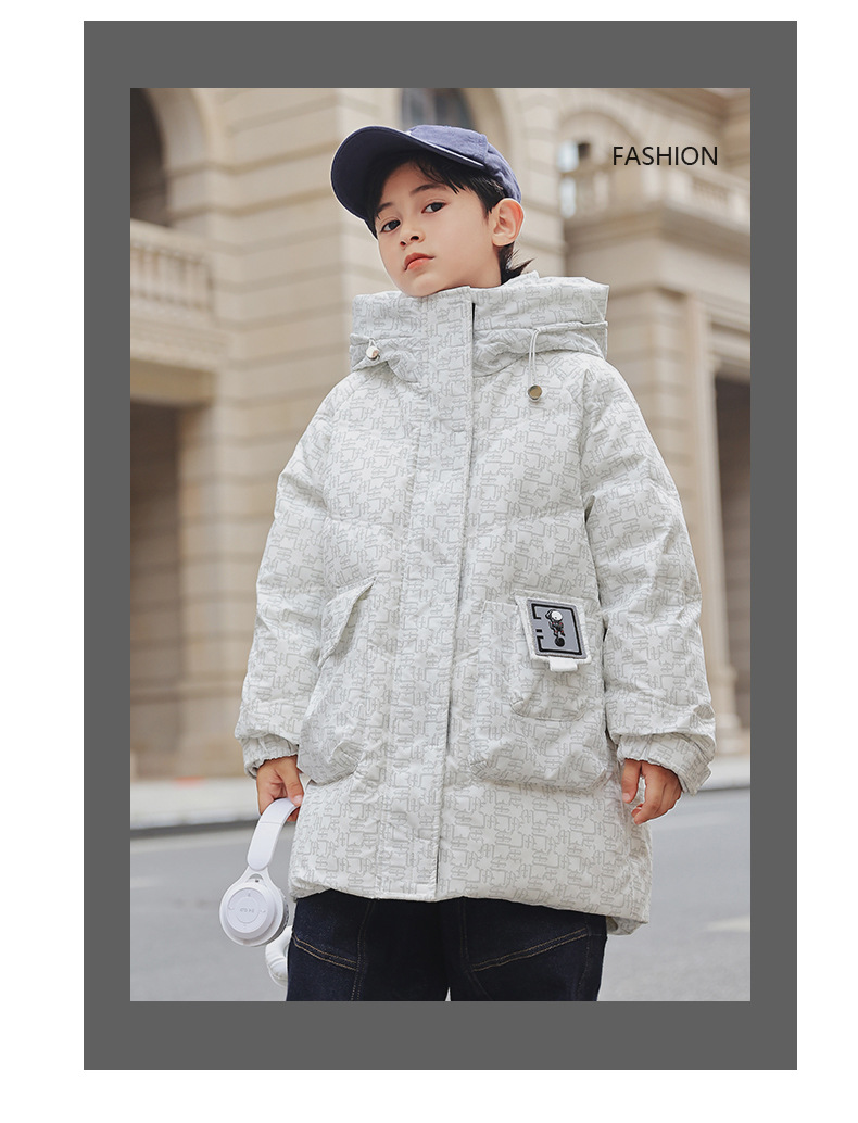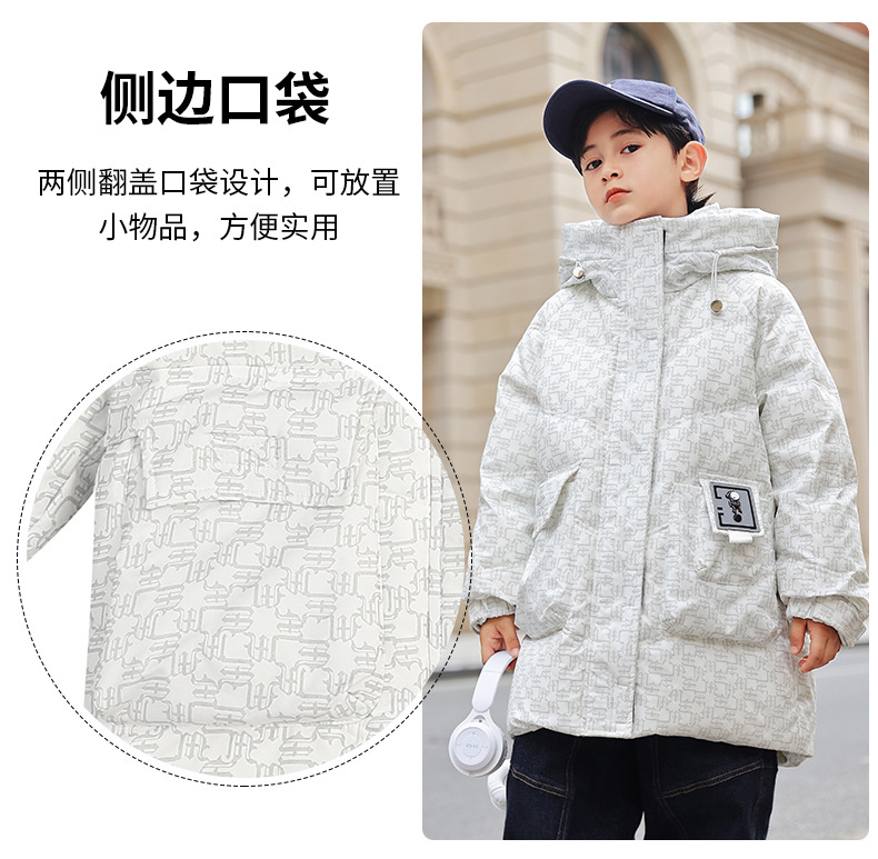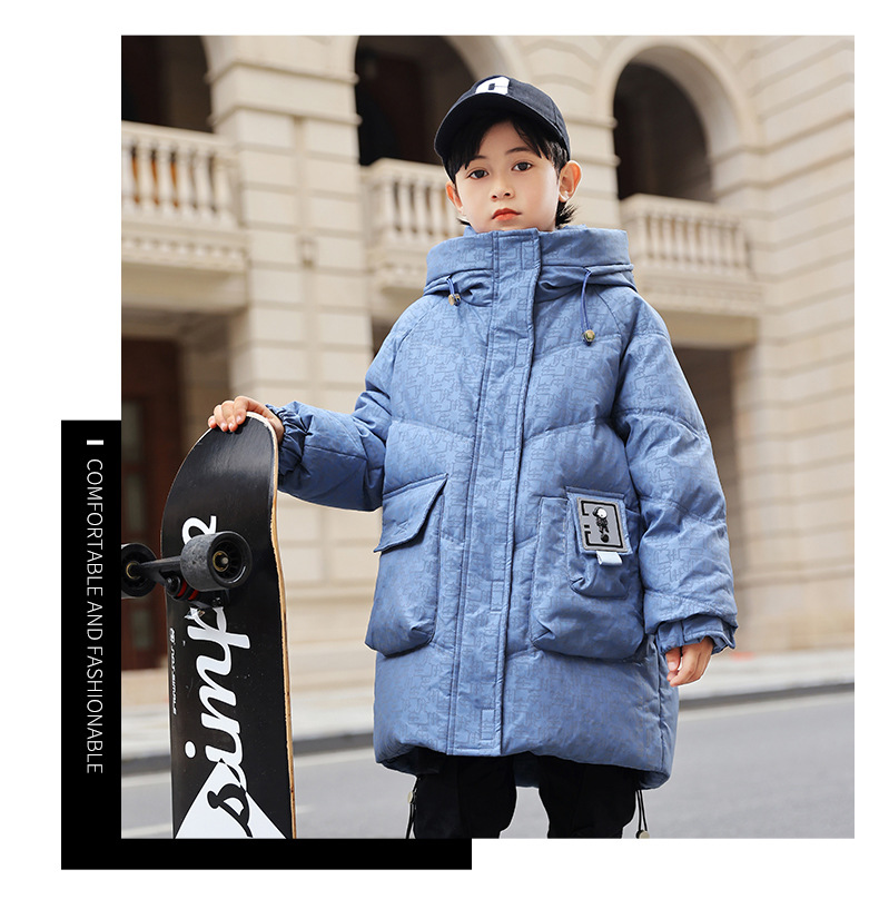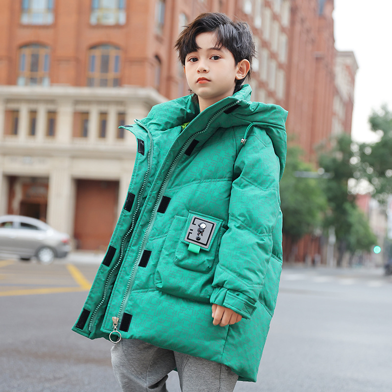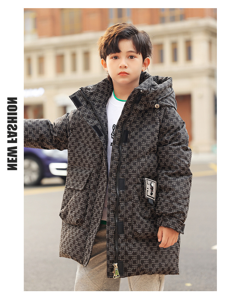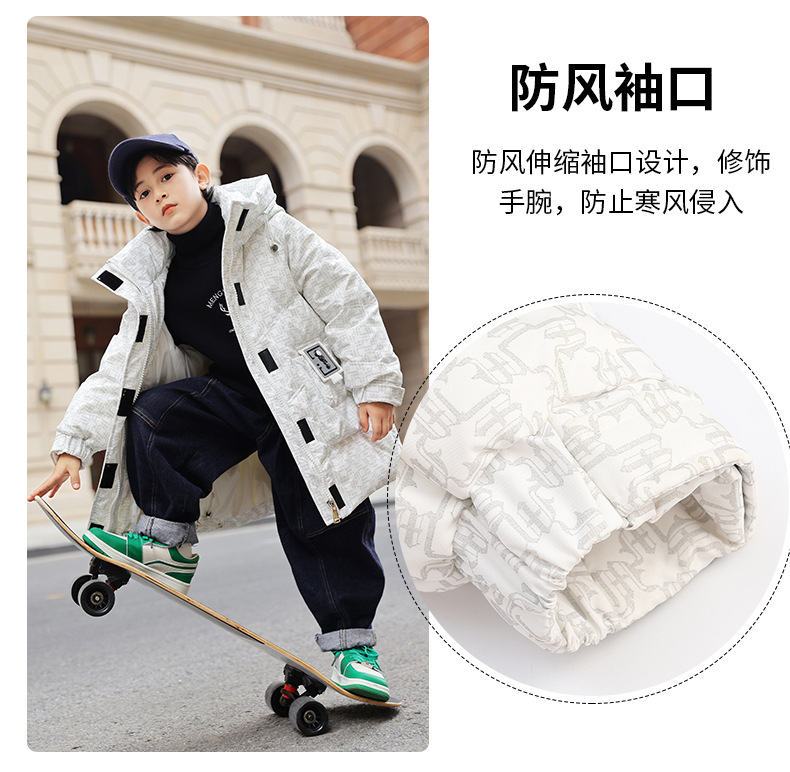 아동 다운 재킷 소년 2024 새로운 중간 길이 중대형 아동 한국어 버전 두꺼운 느슨한 소년 재킷 오프 시즌 프로모션