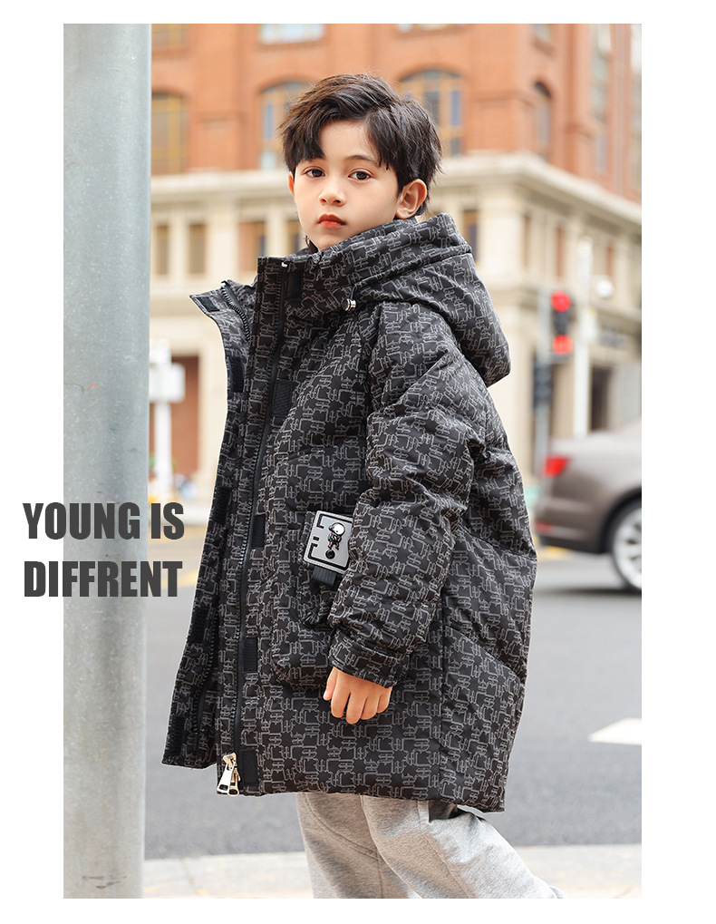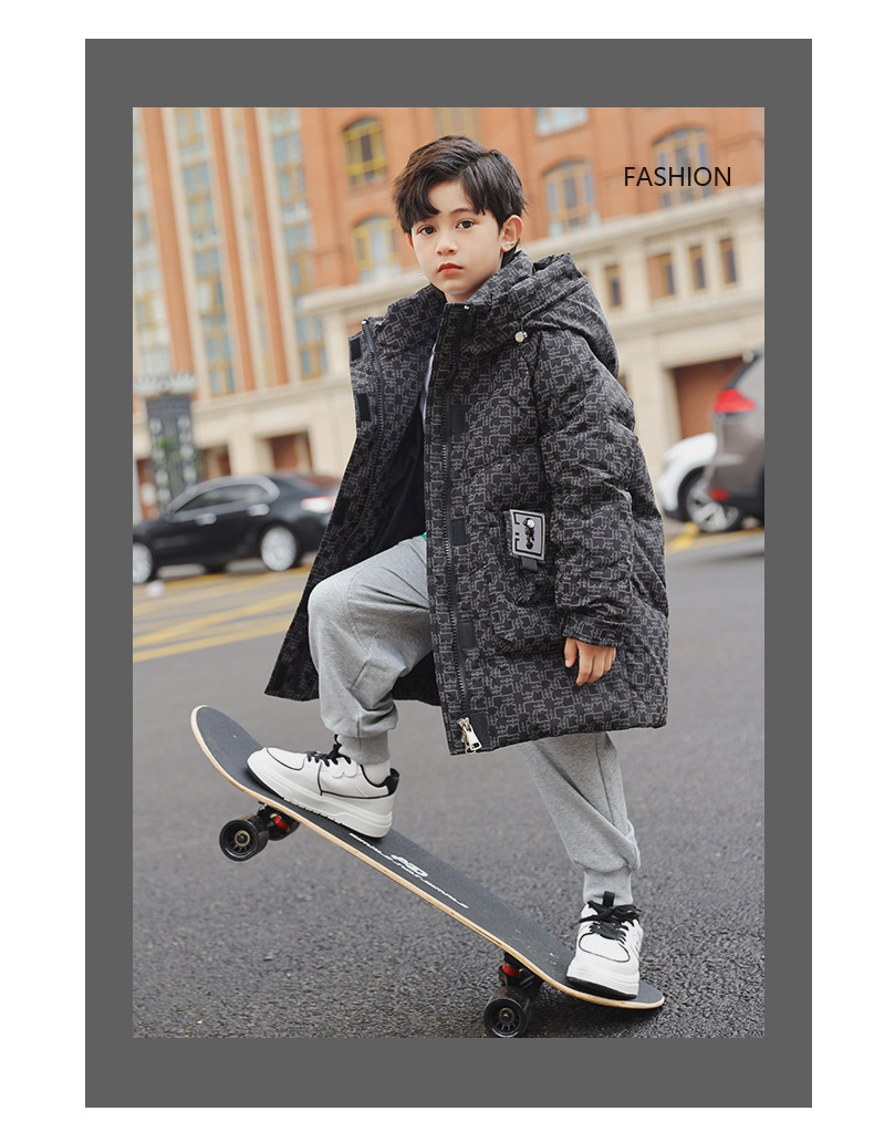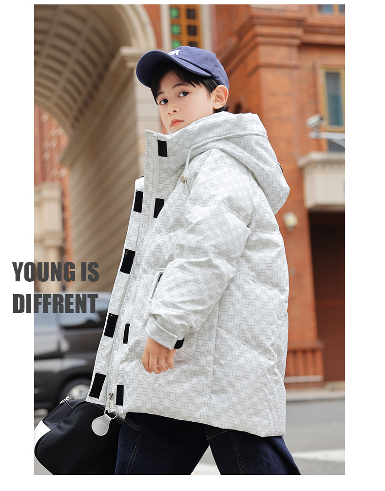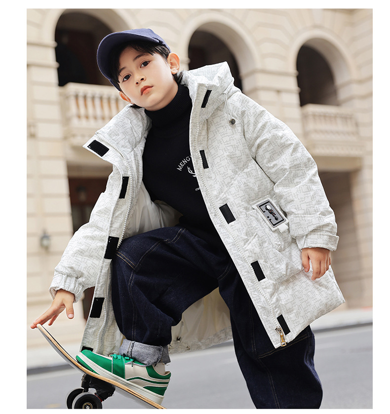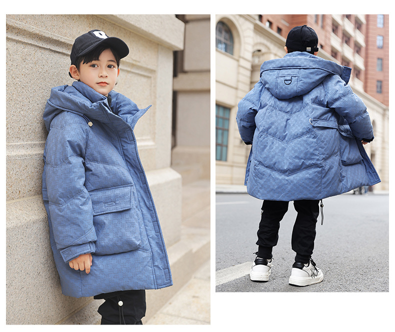아동 다운 재킷 소년 2024 새로운 중간 길이 중대형 아동 한국어 버전 두꺼운 느슨한 소년 재킷 오프 시즌 프로모션스토어 가기