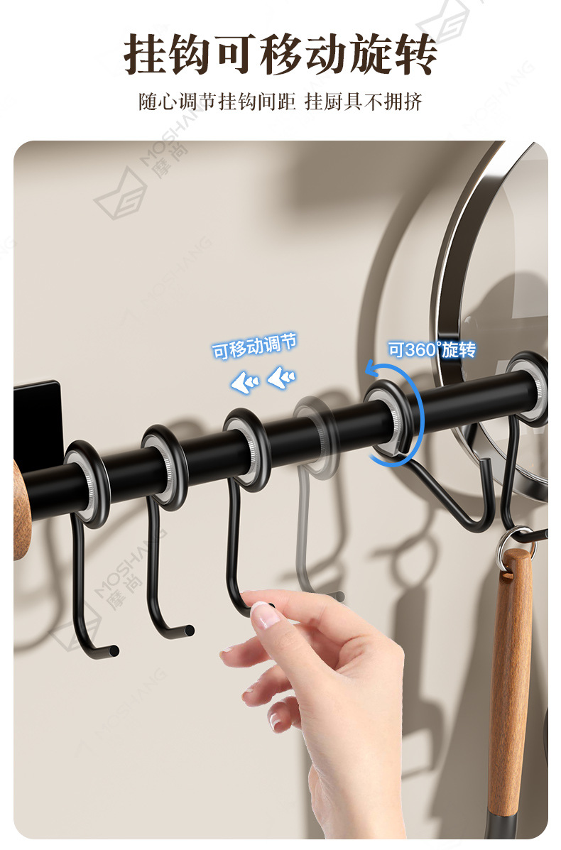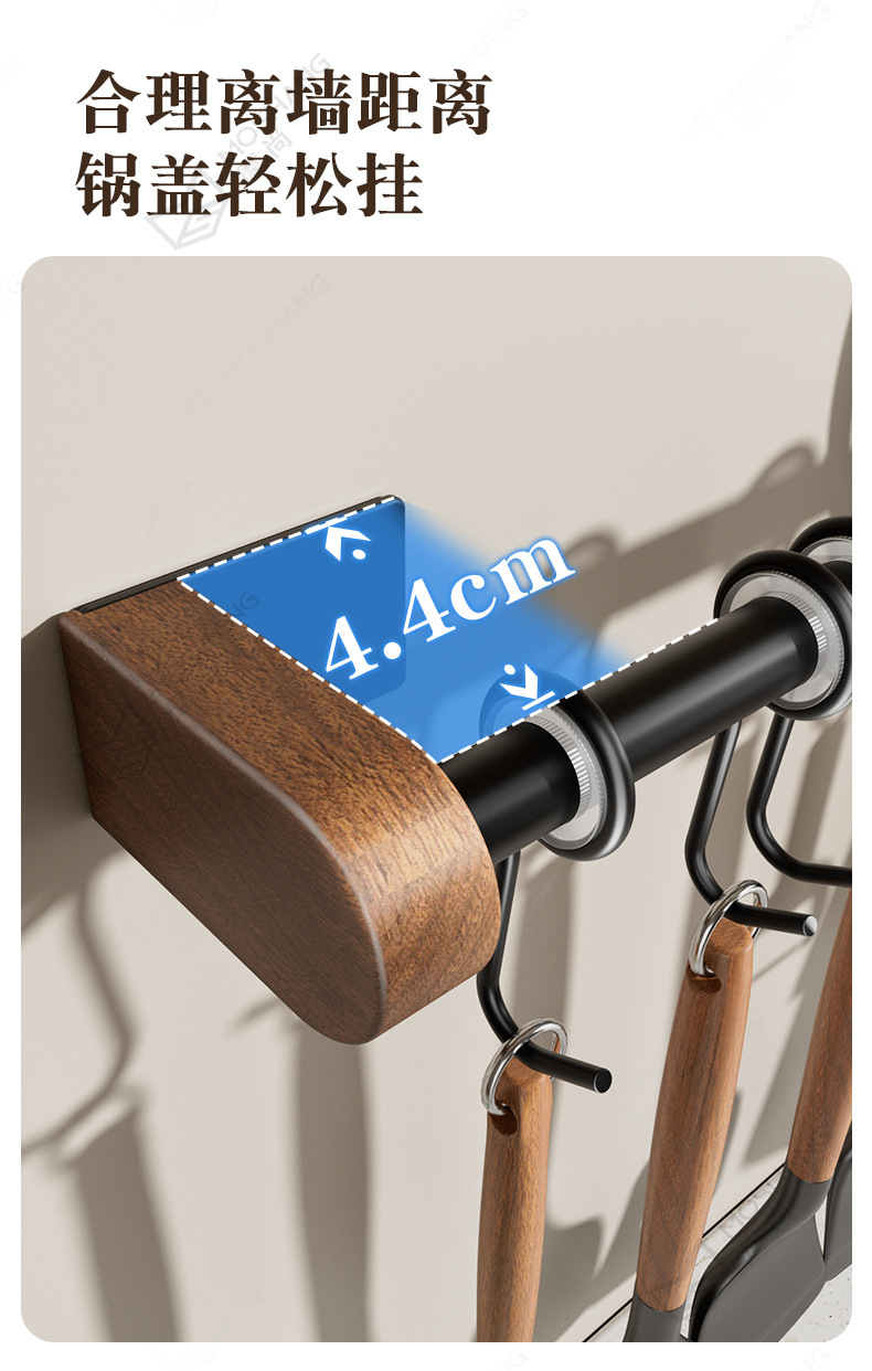 호두나무 주방 후크, 펀치 없는 걸이봉, 주걱, 스푼 수납선반, 스테인리스 벽걸이 수납선반