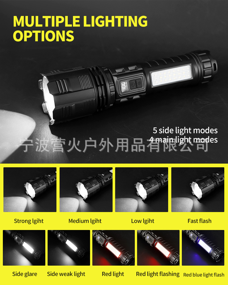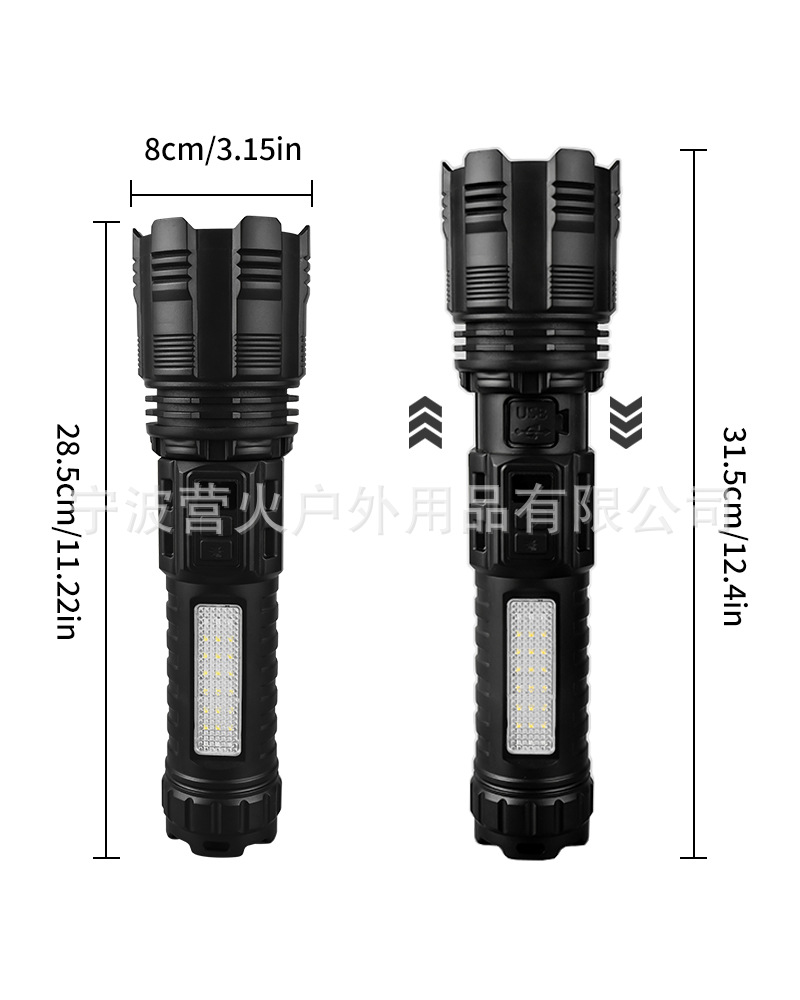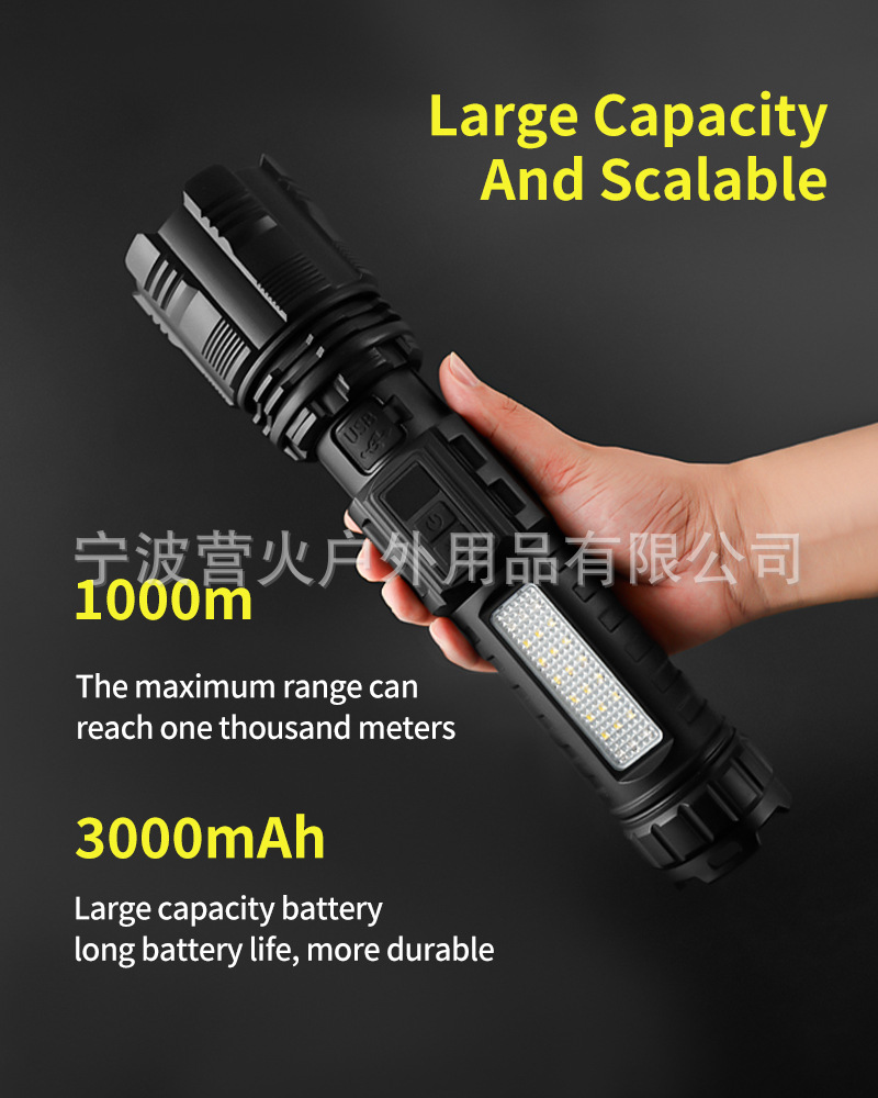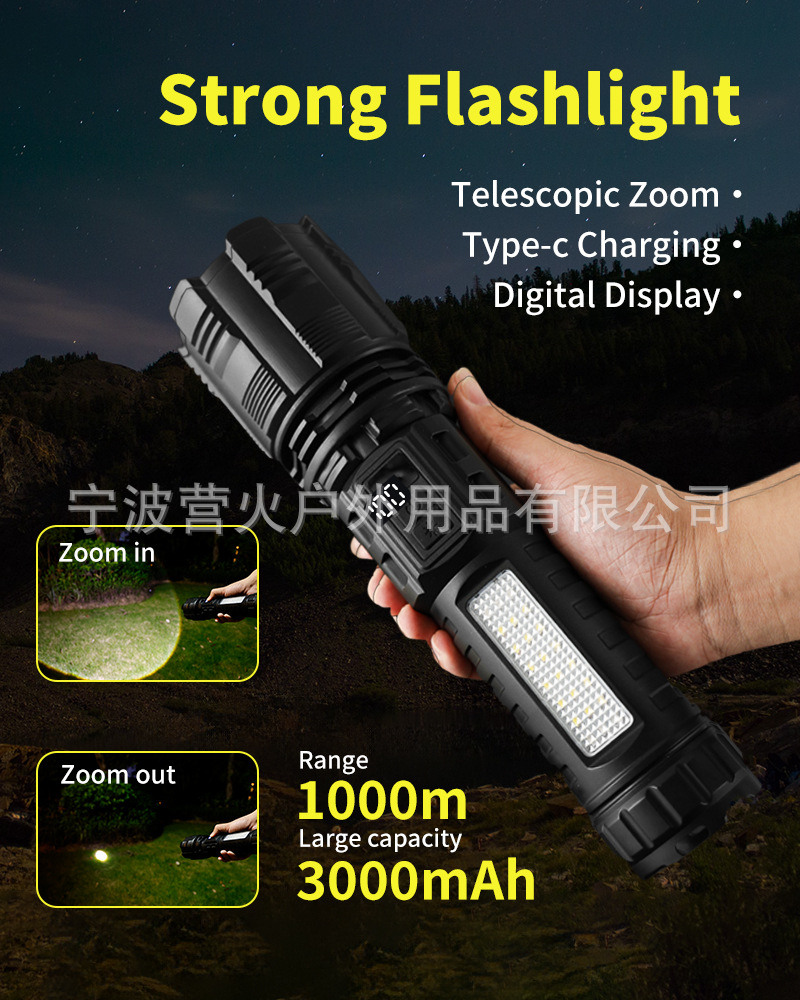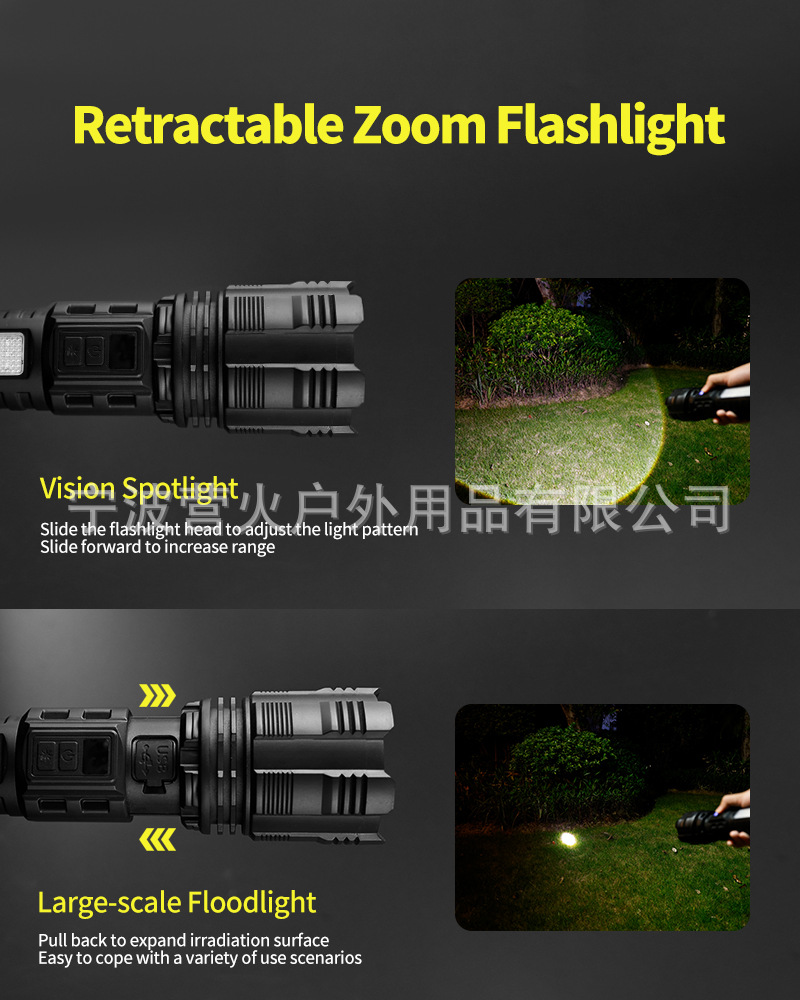 새로운 국경 간 태양 손전등 텔레스코픽 줌 장거리 알루미늄 합금 서치 야외 강한 빛 순찰 빛