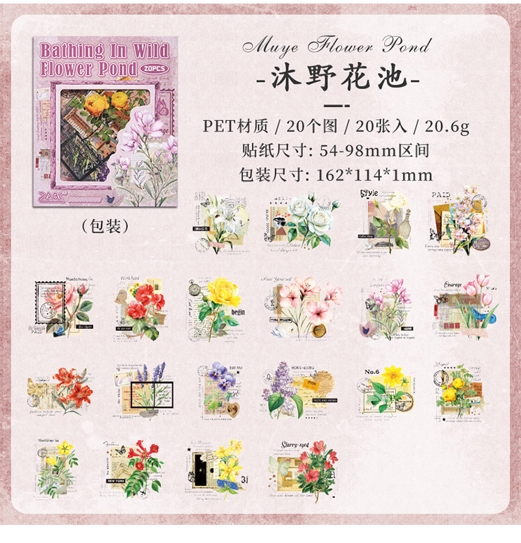 새로운 꽃 콜라주 핸드북 스티커 팩 꽃 핸드북 재료 diy 스티커 도매의 국경 간 전문 공급스토어 가기
