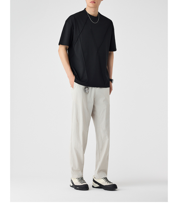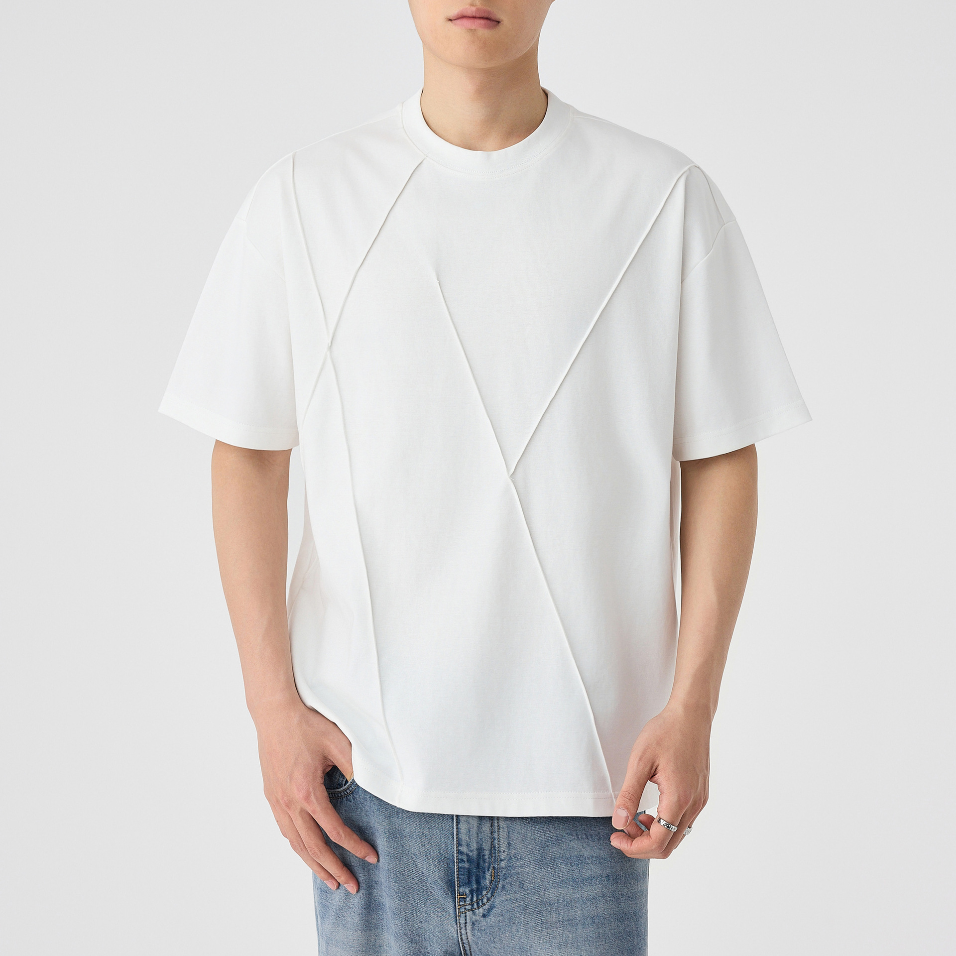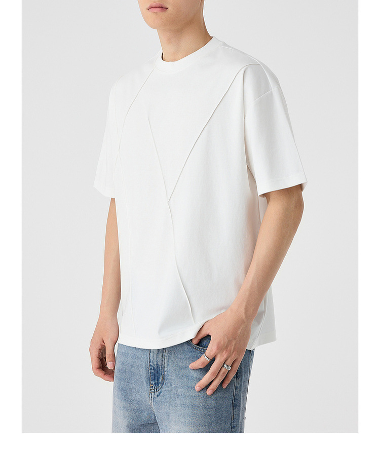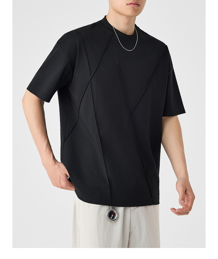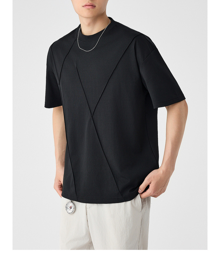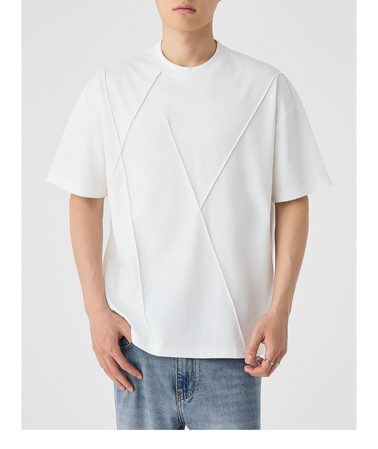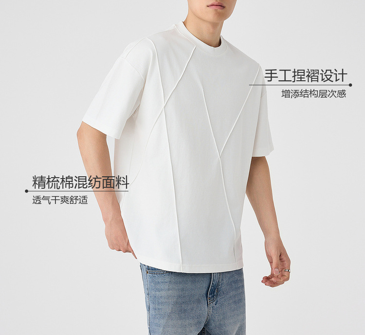 모마이크 남성 수제 주름 라운드넥 반팔 티셔츠 남성 2025 여름 신상 루즈핏 남성 티셔츠 71941