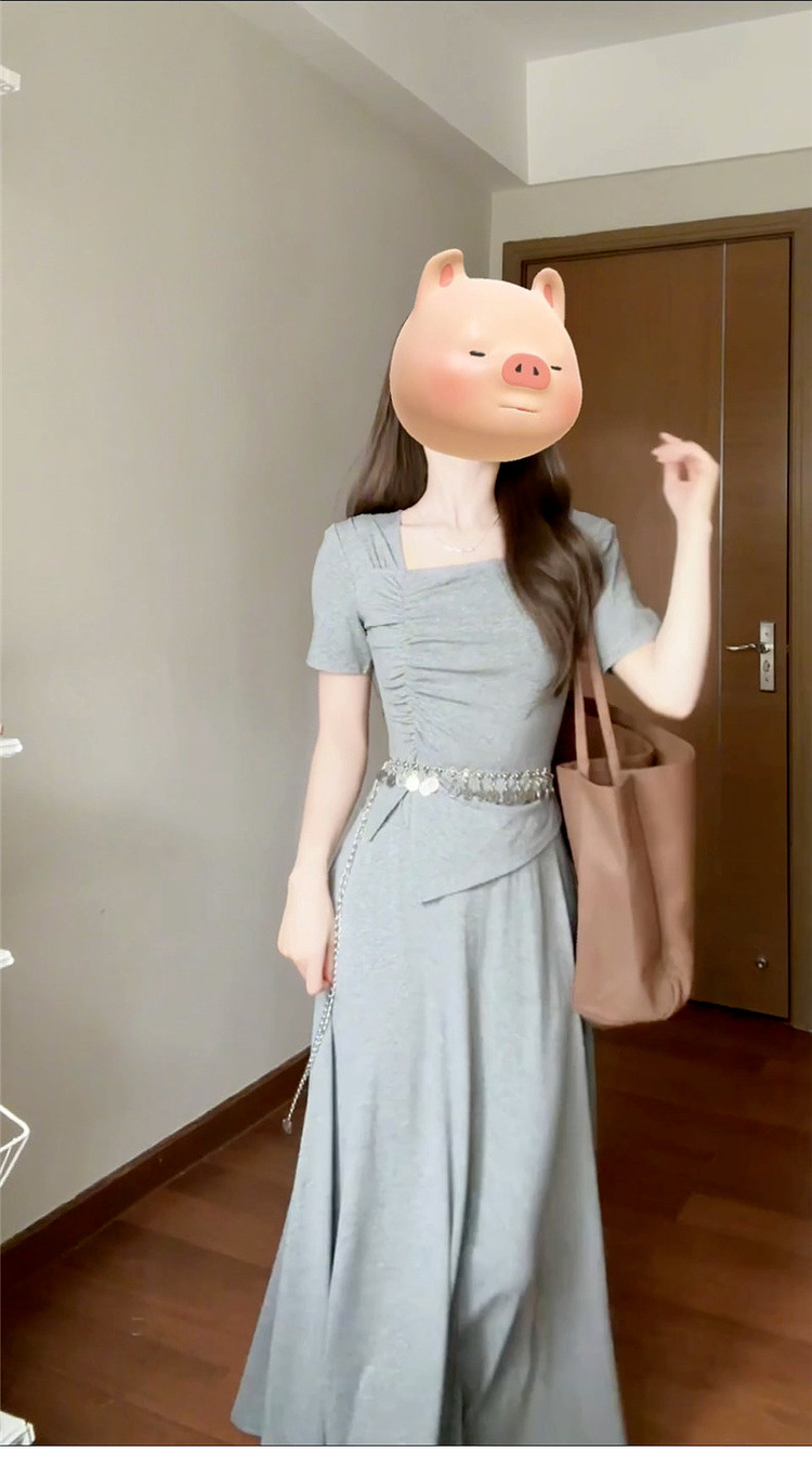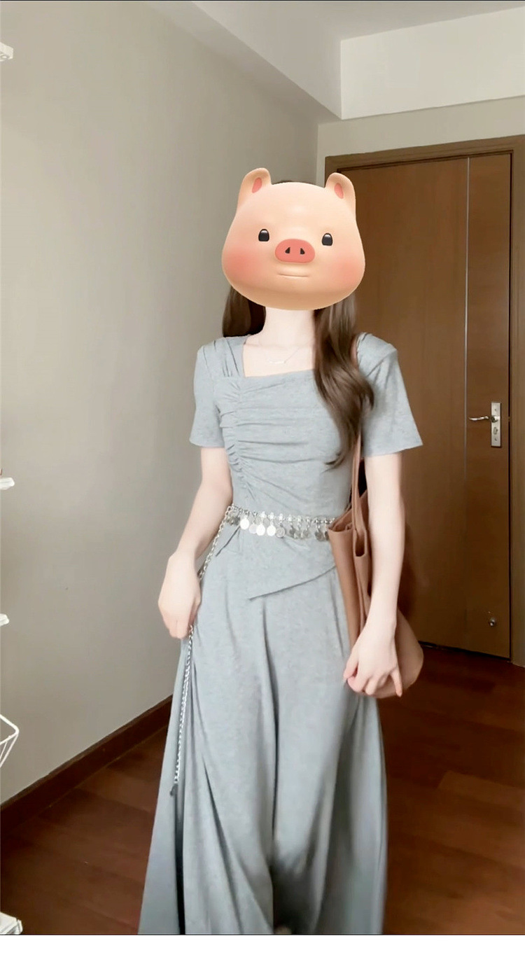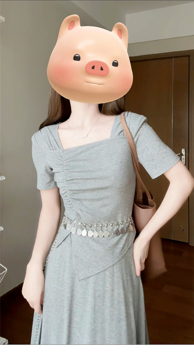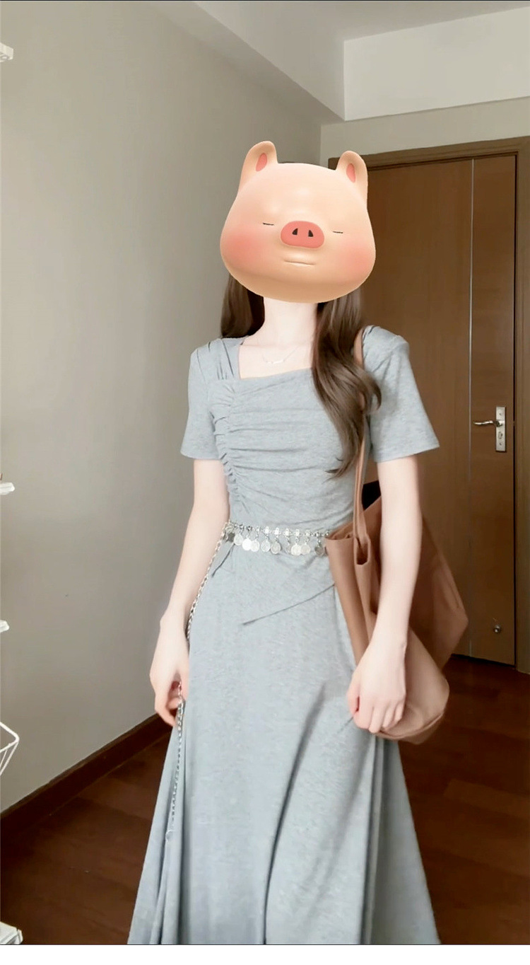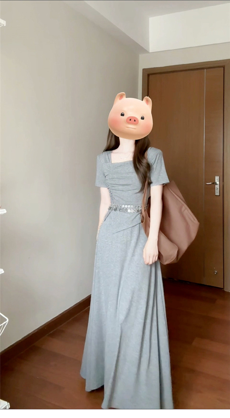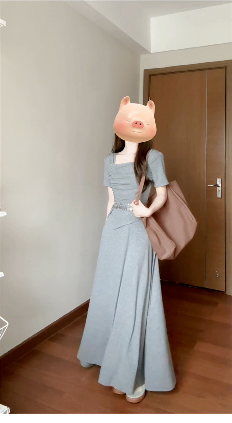 2025 새로운 스타일 작은 게으른 스타일 회색 드레스 여성 여름 프랑스 스타일 하이 엔드 착용 롱 스커트 슈트스토어 가기