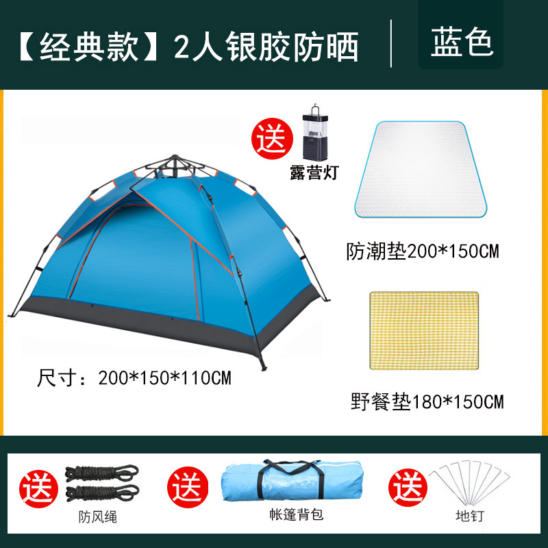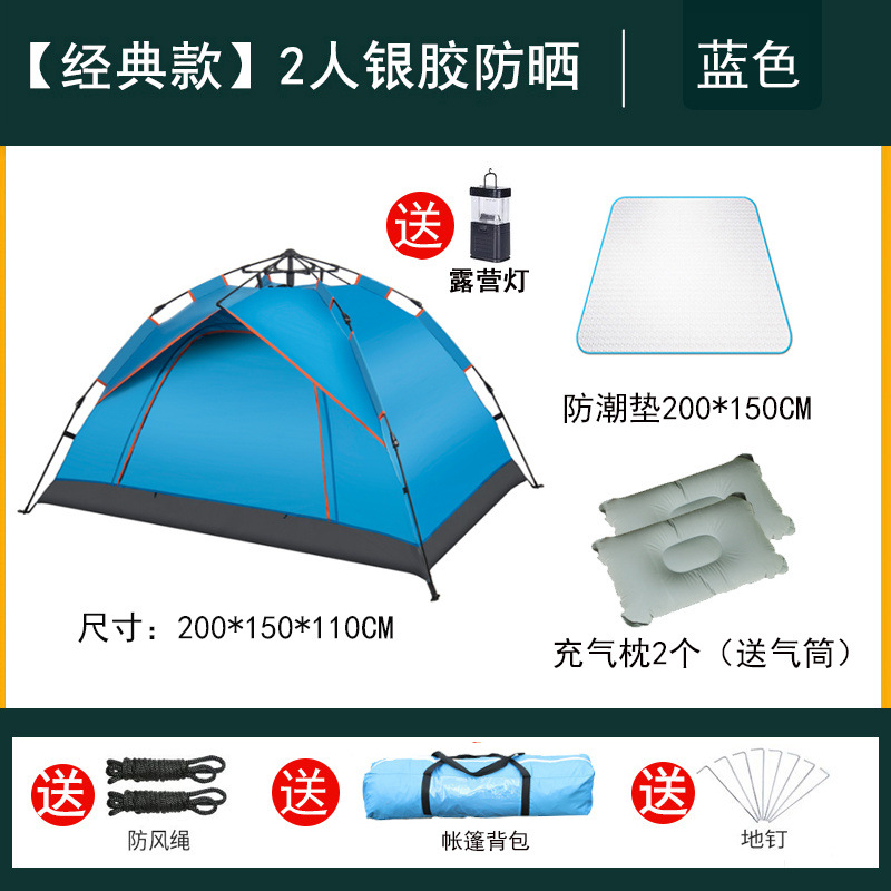 3~4인용 완전 자동 텐트, 야외 자외선 차단, 두껍고 방수, 빠르게 열리는 자동 2인용 야외 캠핑 해변 텐트