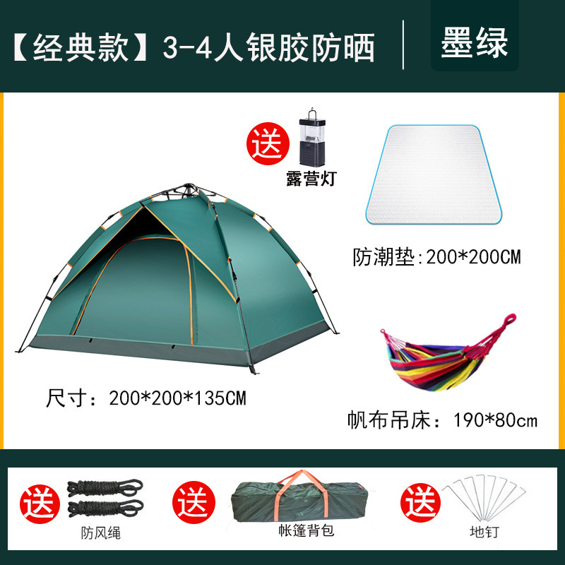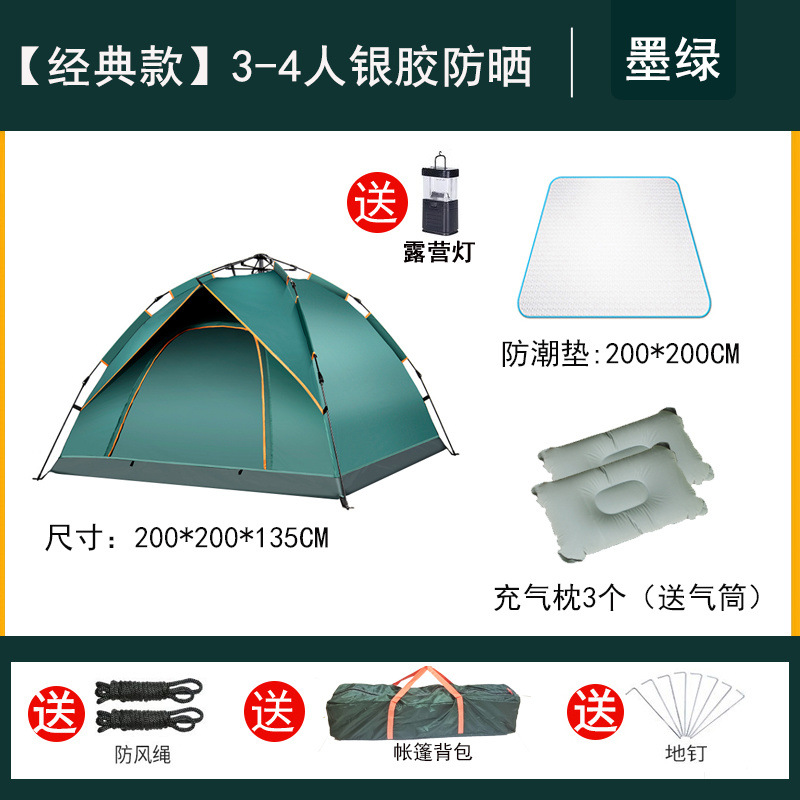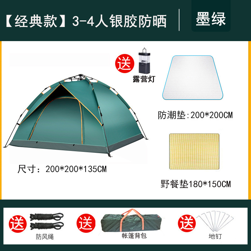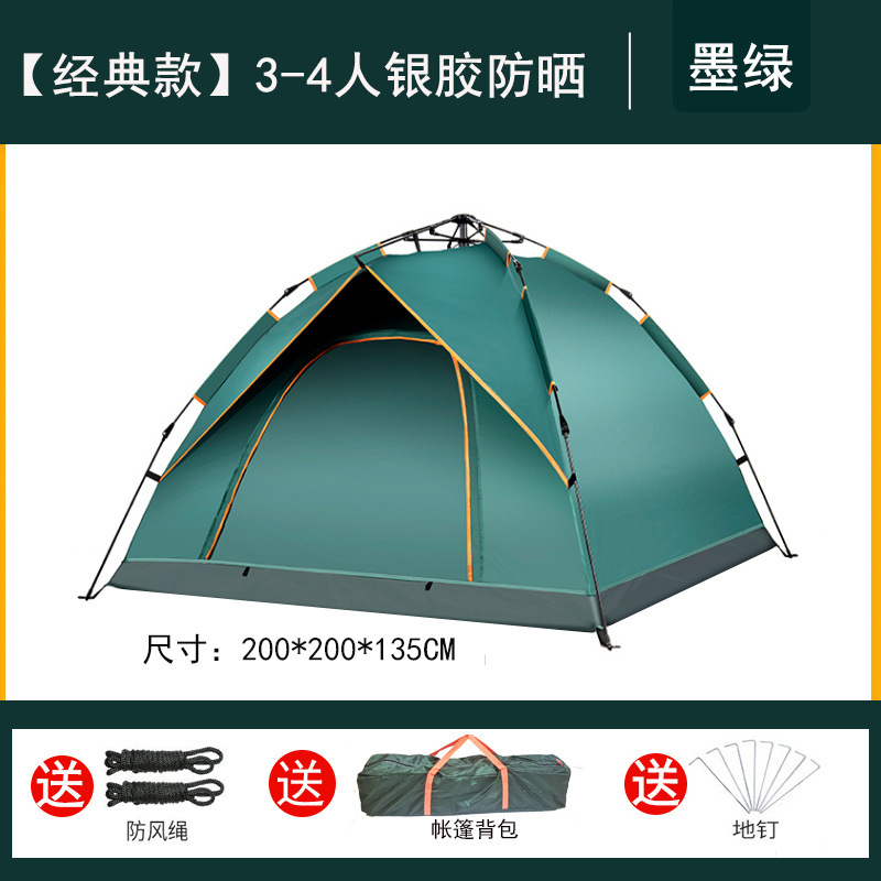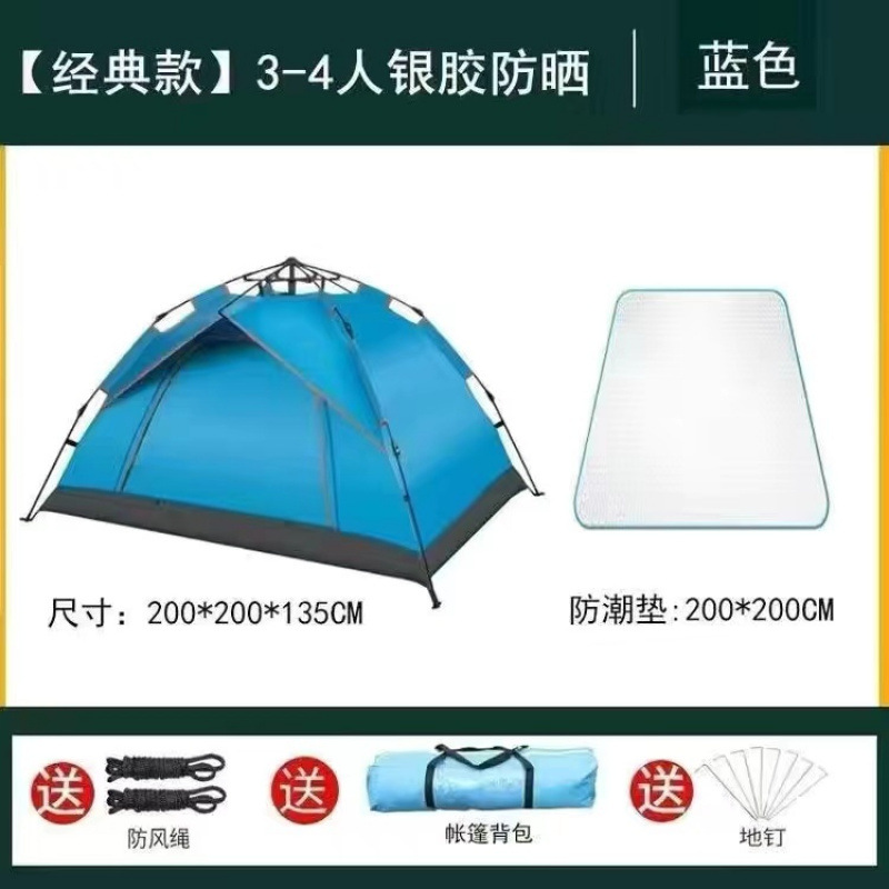 3~4인용 완전 자동 텐트, 야외 자외선 차단, 두껍고 방수, 빠르게 열리는 자동 2인용 야외 캠핑 해변 텐트스토어 가기