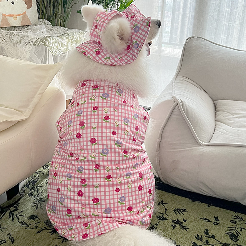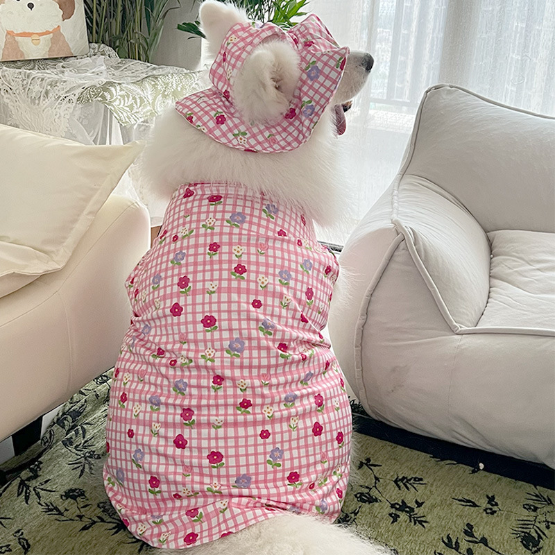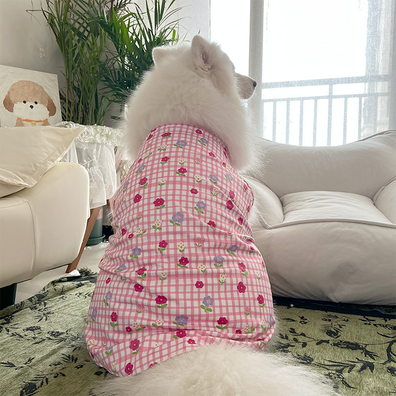 2025 새로운 핑크 격자 무늬 꽃 애완견 중형 및 대형견 골든 리브드 셰퍼드 귀여운 조끼 옷스토어 가기