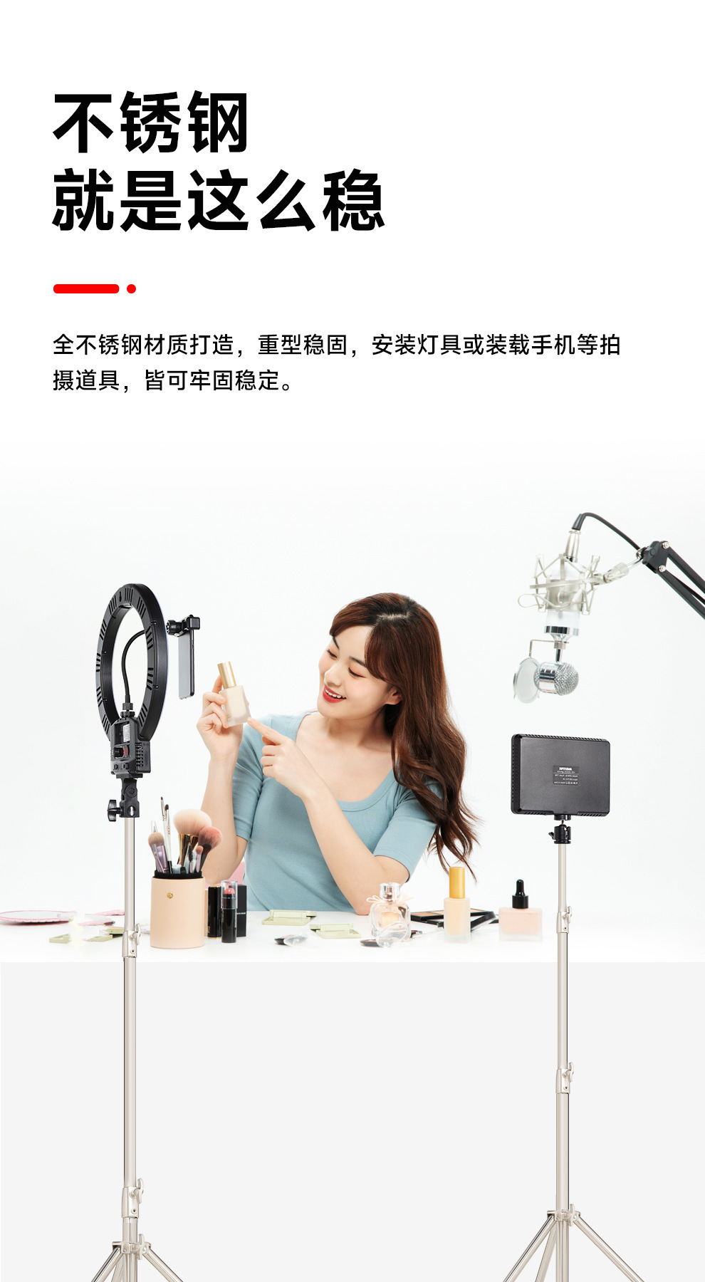 2.1M 스테인레스 스틸 램프 홀더 사진 브래킷 카메라 삼각대 휴대 전화 라이브 채우기 라이트 브래킷 스테인레스 스틸 램프 홀더스토어 가기