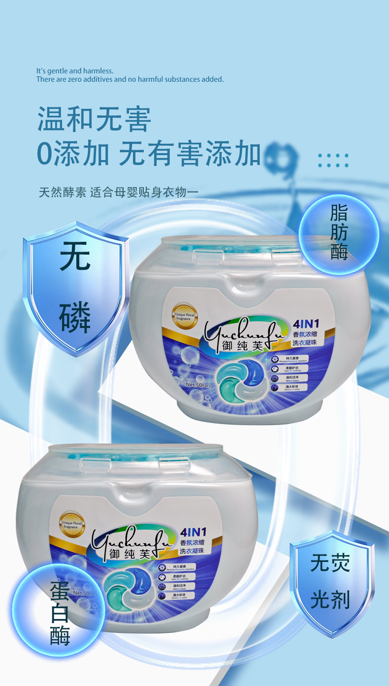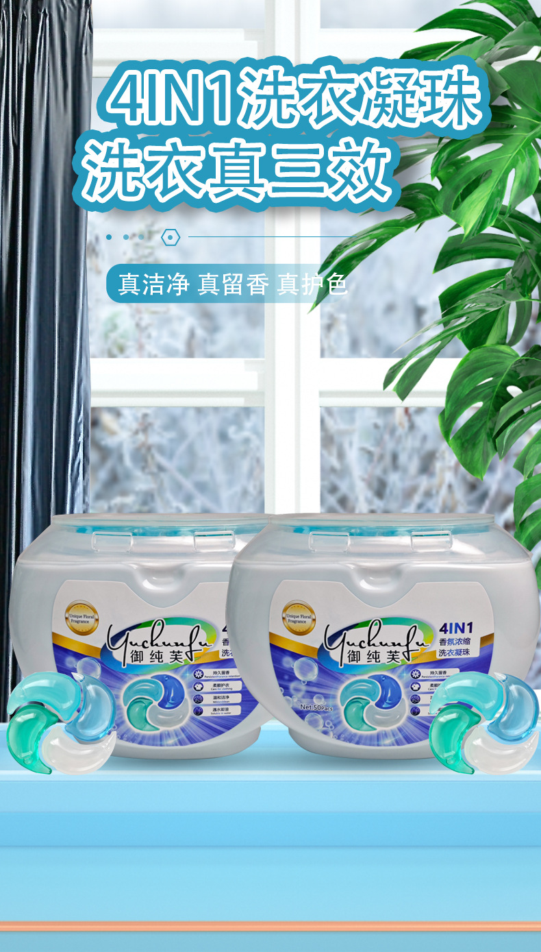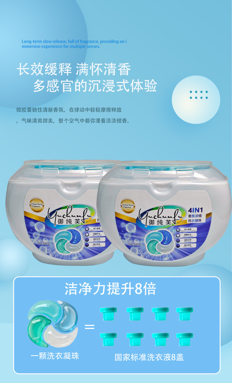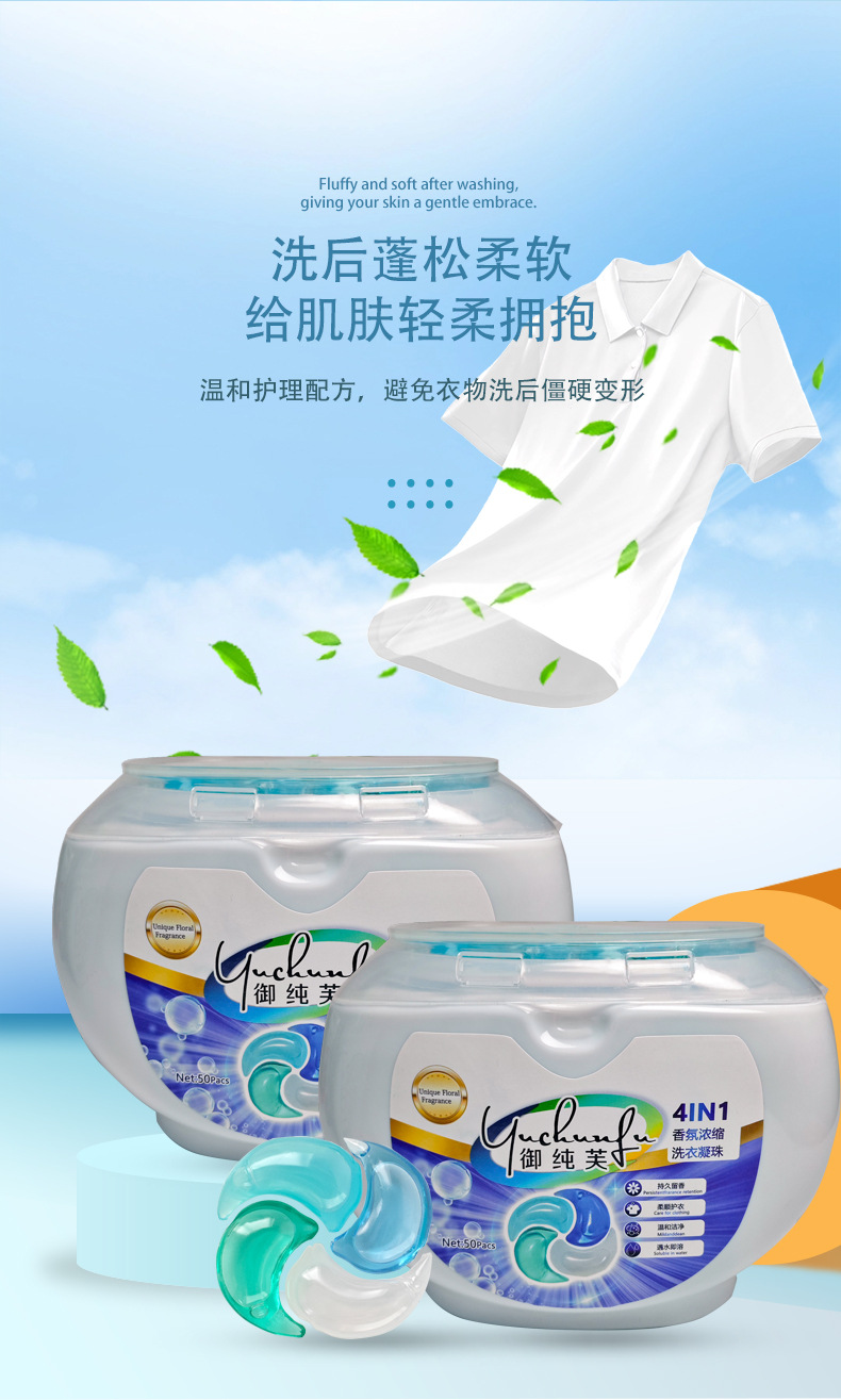 Yuchunfu 농축 4 챔버 세탁 비즈 국경 간 영어 버전 청소 및 오염 제거 향기 4-in-1 세탁 비즈 제조업체스토어 가기