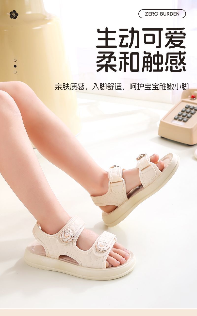 2025 새로운 여름 소녀 샌들 미끄럼 방지 벨크로 학생 간단한 스포츠 캐주얼 소프트 단독 소녀 신발스토어 가기