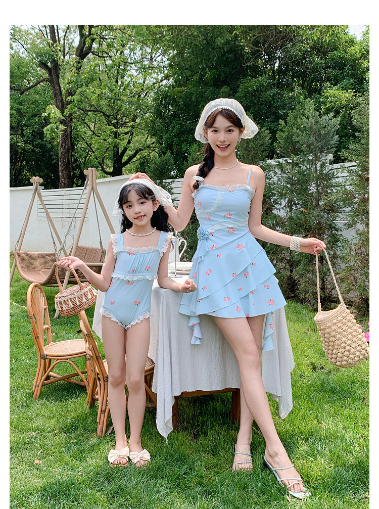 한국어 버전 2025 새로운 부모-자식 수영복 엄마와 딸 서양식 보수적 원피스 스커트 스타일 슬리밍 소녀 워터 파크