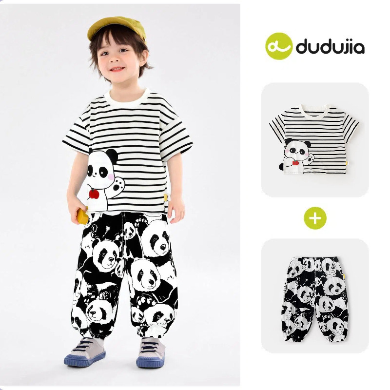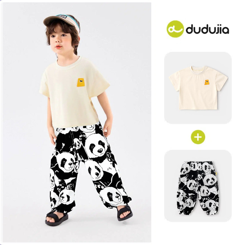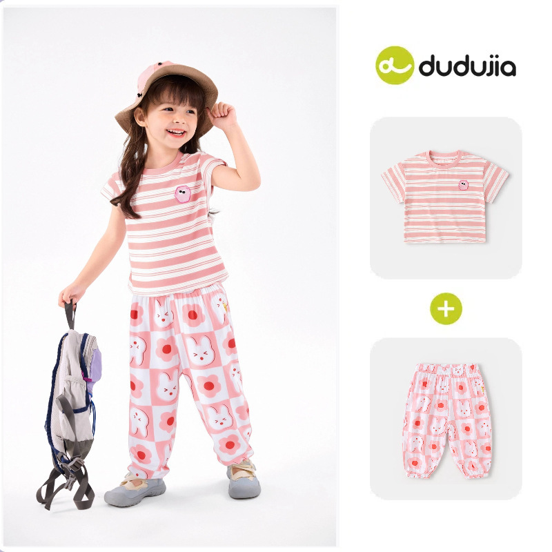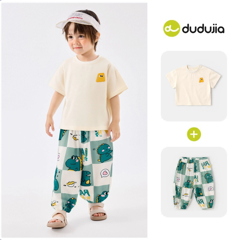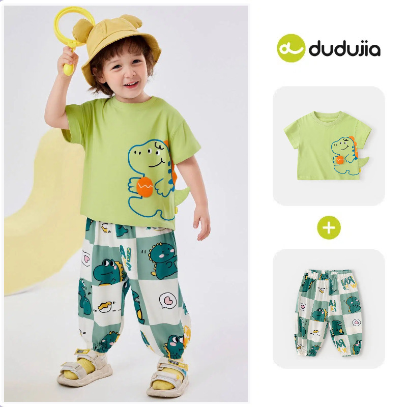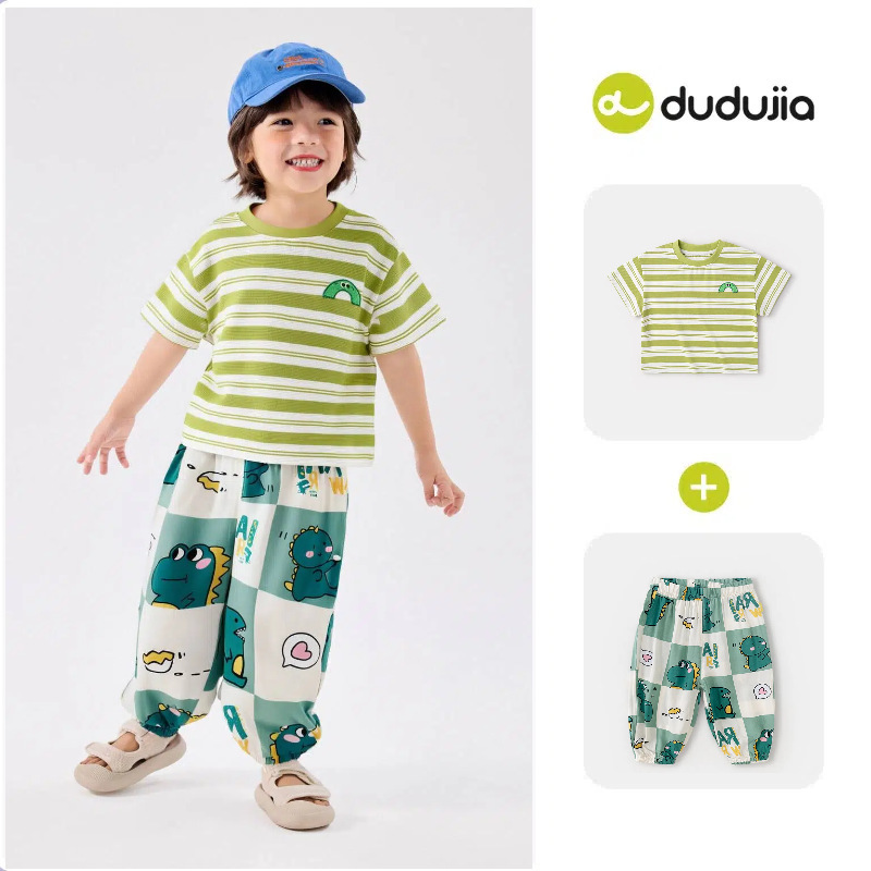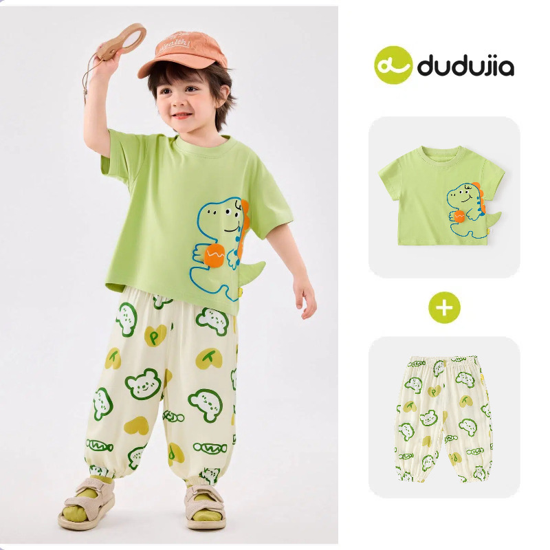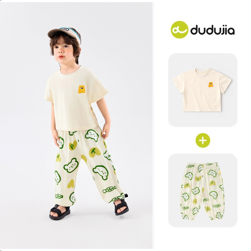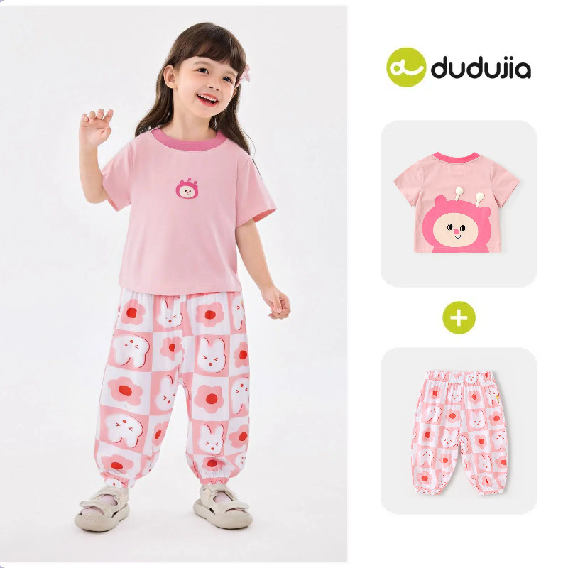 [여름 반팔 바지] 낙서 아기 세트 소년 티셔츠 물리적 안티 모기 바지 여름 여성 아동복 T