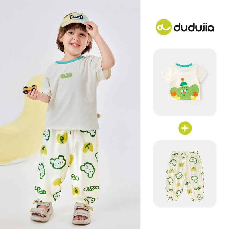 [여름 반팔 바지] 낙서 아기 세트 소년 티셔츠 물리적 안티 모기 바지 여름 여성 아동복 T스토어 가기