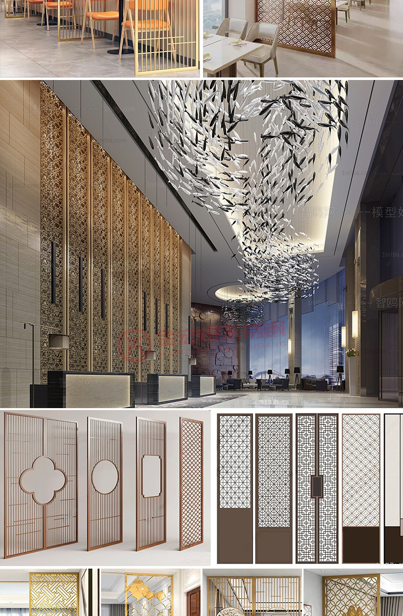 현대 스테인레스 스틸 스크린 레이저 중공 입구 새로운 중국 스타일의 골동품 구리 알루미늄 조각 파티션 호텔 배경 장식