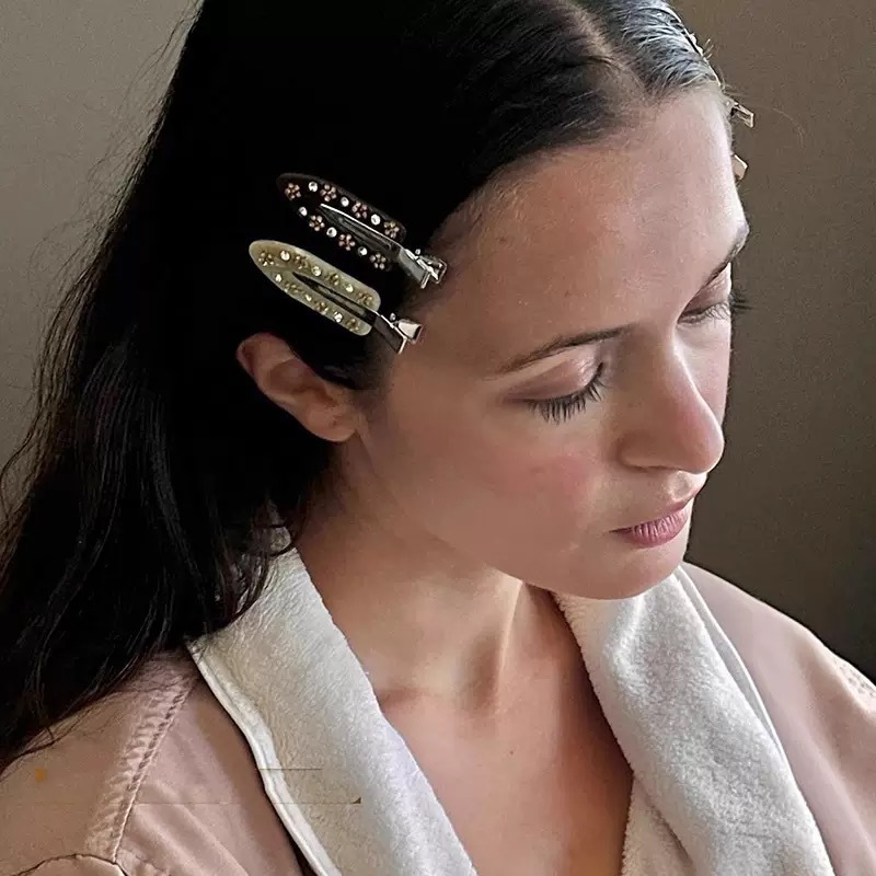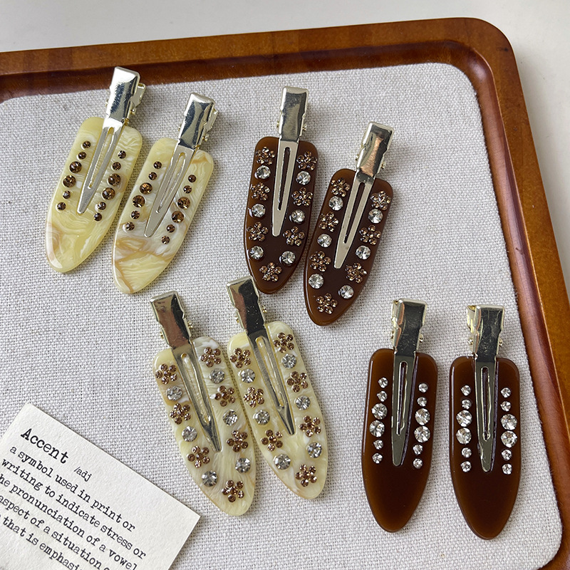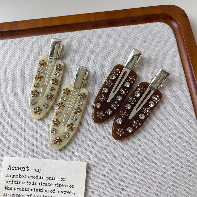 문학적이고 예술적인 다이아몬드가 박힌 작은 머리핀, 앞머리 클립, 짧은 머리용 원라인 클립, 한국산 아세테이트 머리핀, 인터넷 연예인 덕빌 클립, 머리핀스토어 가기