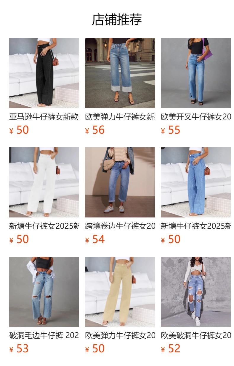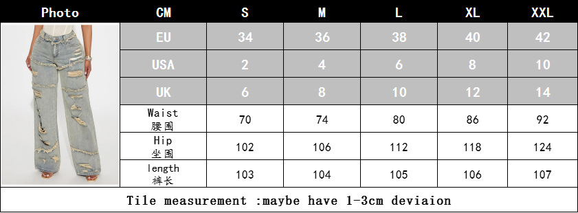 여성을위한 대외 무역 청바지 2025 새로운 핫 판매 유럽과 미국의 찢어진 와이드 팬츠 워시 패션 찢어진 청바지스토어 가기