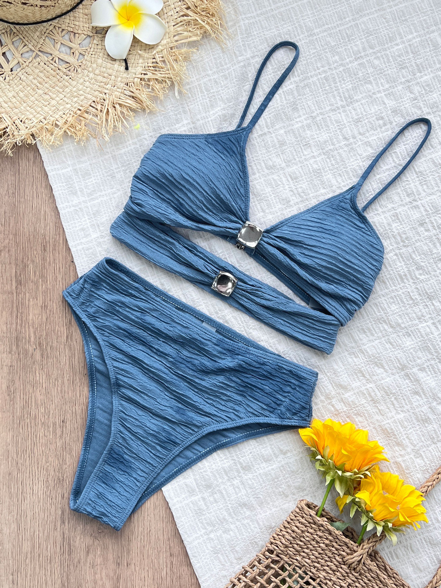 솔리드 컬러 하이 웨이스트 스플릿 수영복 여성 2025 새로운 슬립 중공 삼각형 비키니 AliExpress 비키니 수영복스토어 가기