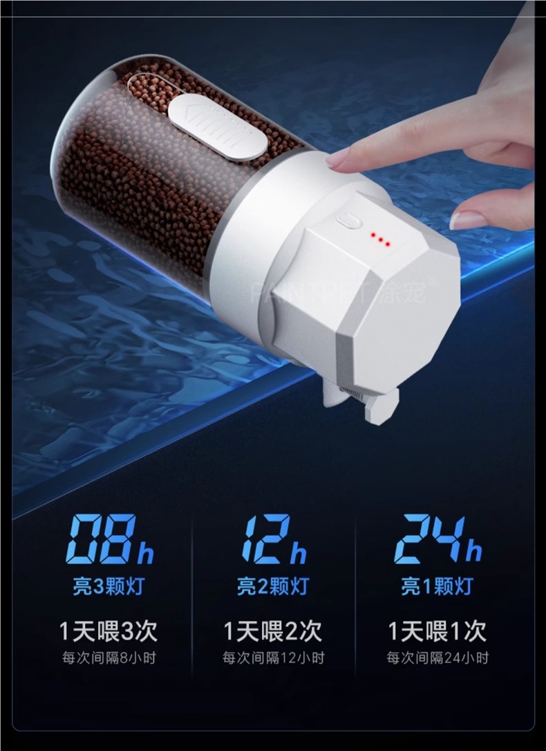 • [업그레이드된 지능형 4단 타이밍] 자동급이기 100ml 대형 사료통[] 1mm 어류사료 120g[]