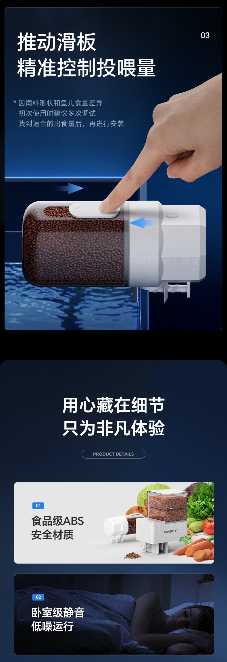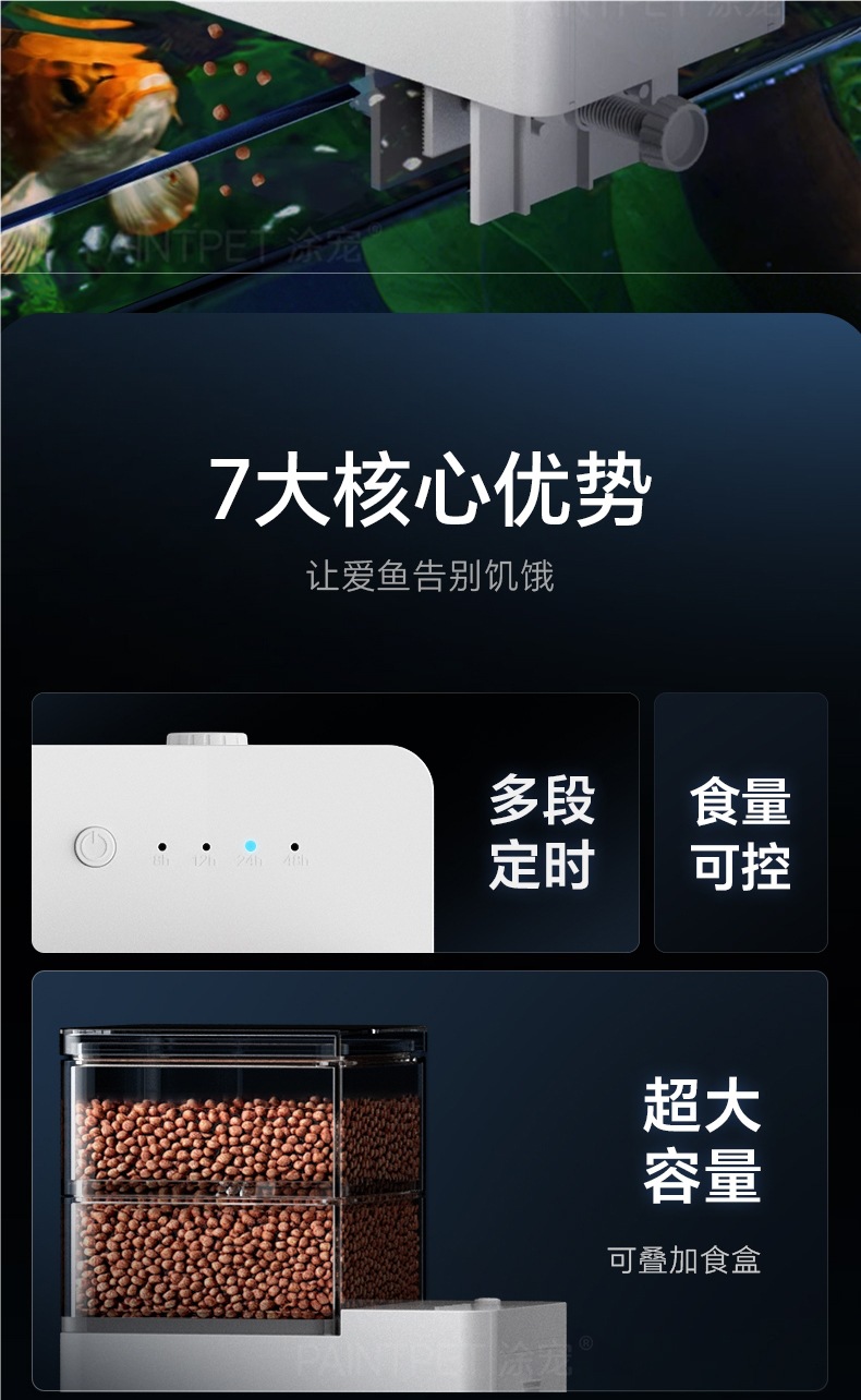• [업그레이드된 지능형 4단 타이밍] 자동급이기 500ml 대형 사료통[] 1mm 어류사료 120g[]