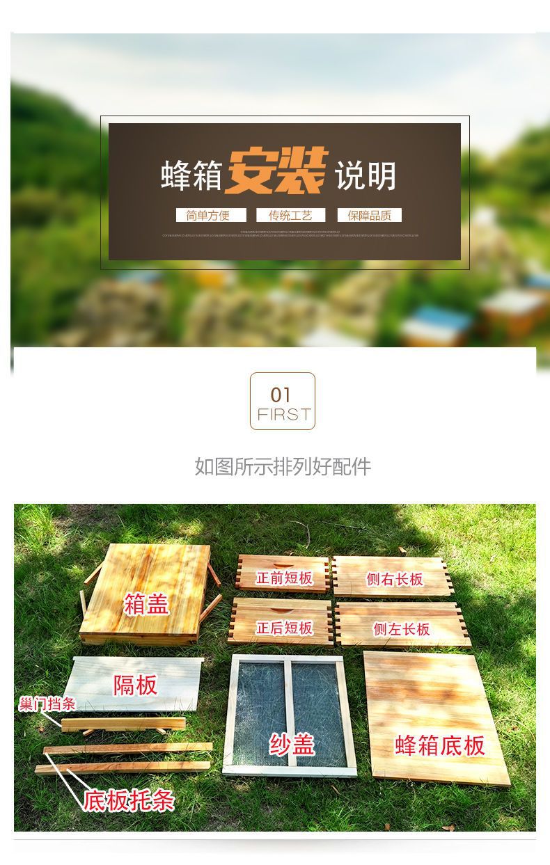 중형 벌집, 표준 10프레임 전소나무 벌집, 왁스 침지 플랫 박스, 벌집 프레임, 벌집, 양봉 도구 세트스토어 가기