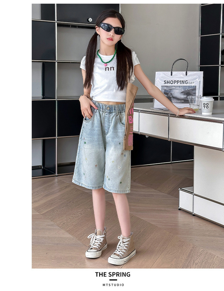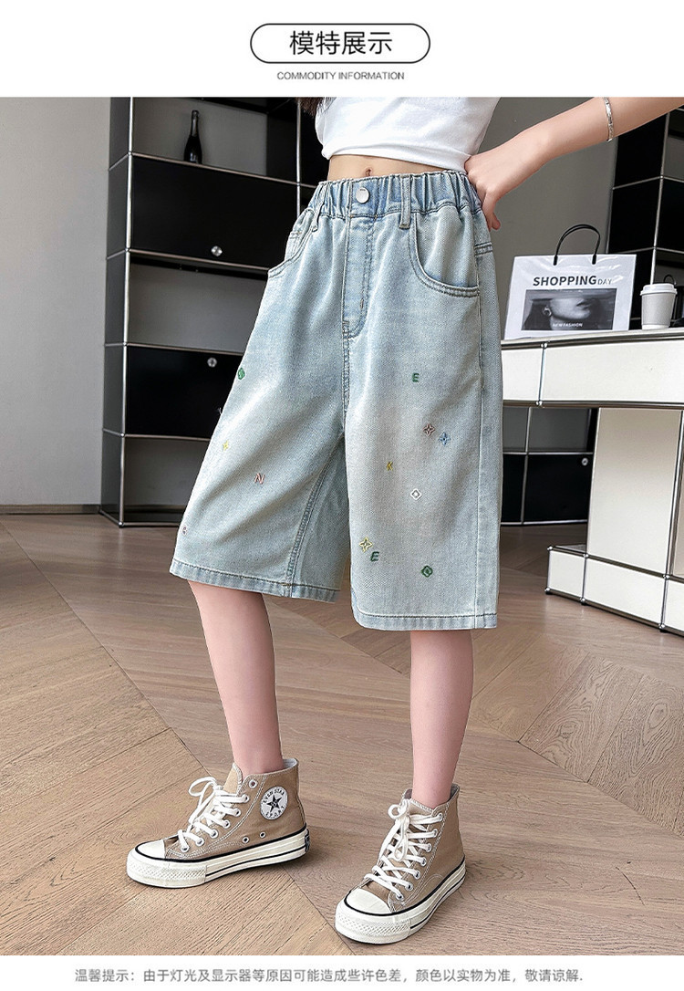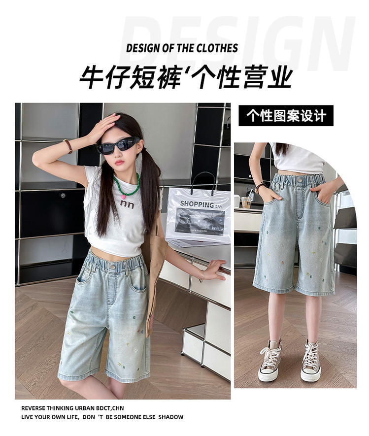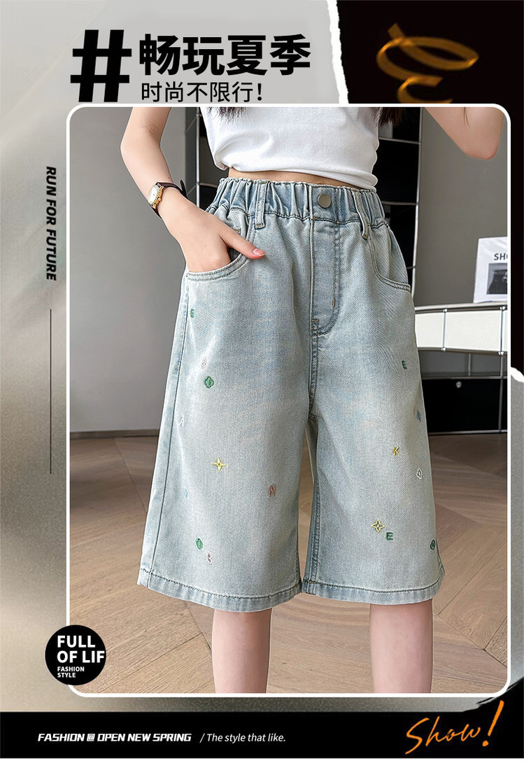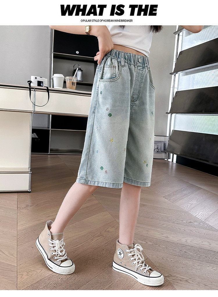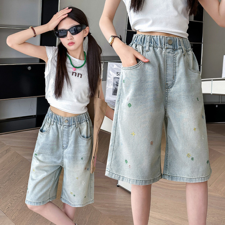 여아 패션 데님 반바지 여름 착용 2025 새로운 아동 바지 중대형 아동 여름 얇은 캐주얼 5부 바지