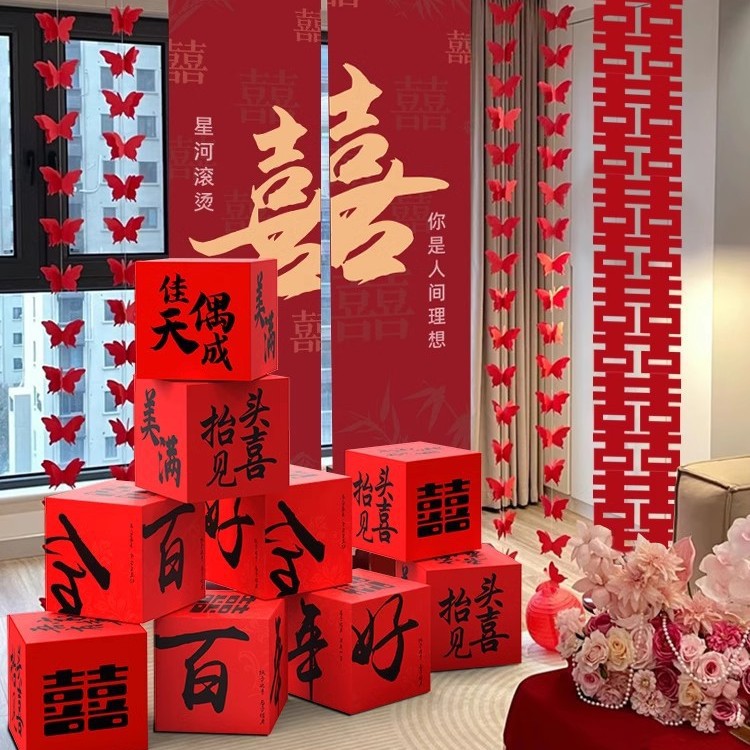 웨딩룸 레이아웃 2025 거실 입체 행복 단어 바닥 장식품 장식 호텔 웨딩 세트 푸티 박스