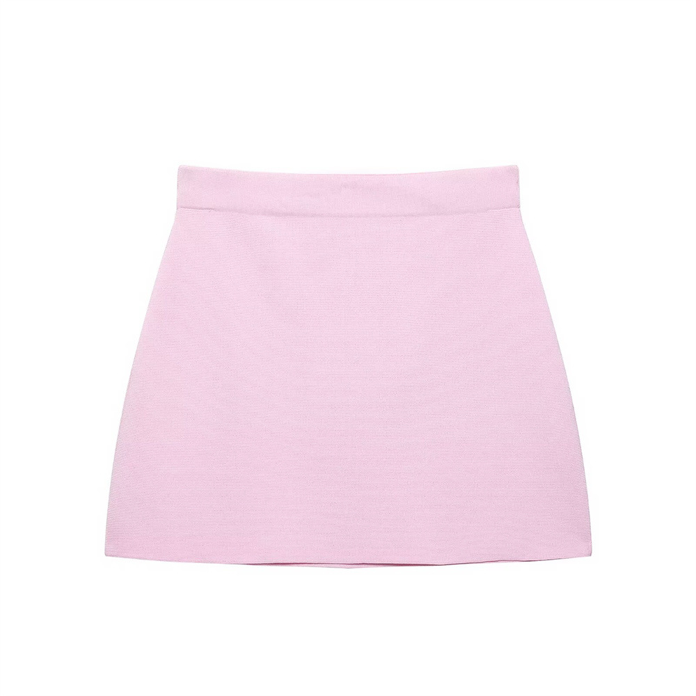 대외 무역 2025 유럽과 미국 여름 새로운 패션 라운드 넥 반팔 스웨터 + 여성용 하이 웨이스트 짧은 스커트 1822022