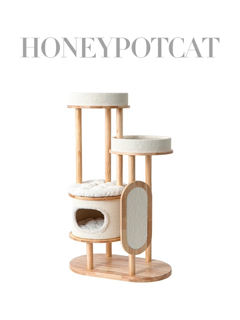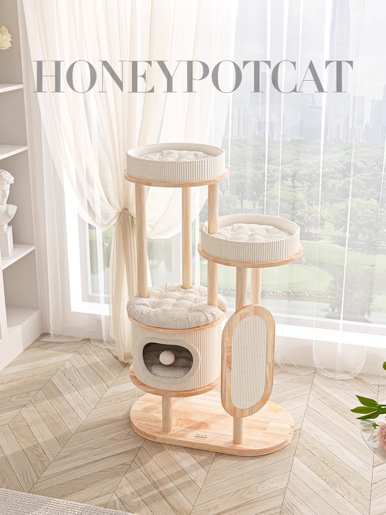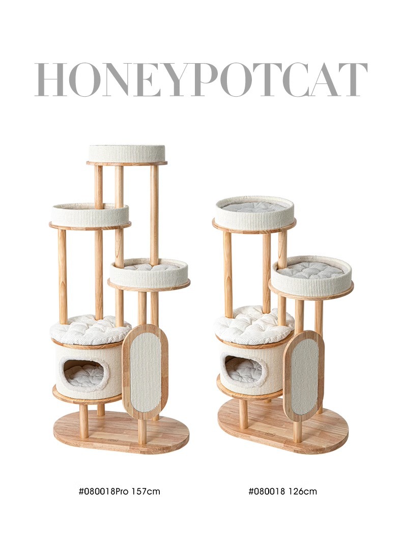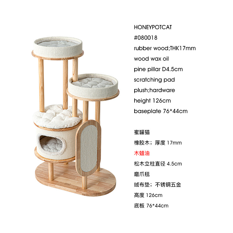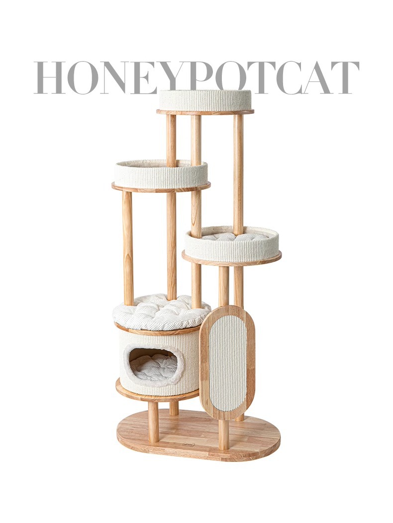 허니팟 고양이 클라이밍 프레임, 고양이 둥지, 고양이 트리, 원목 기둥 고양이 프레임, 가정용 고무나무 고양이 장난감 080018