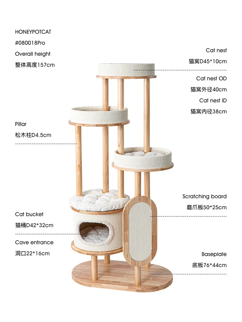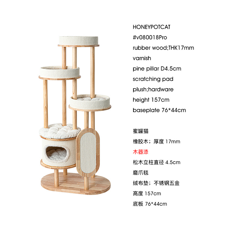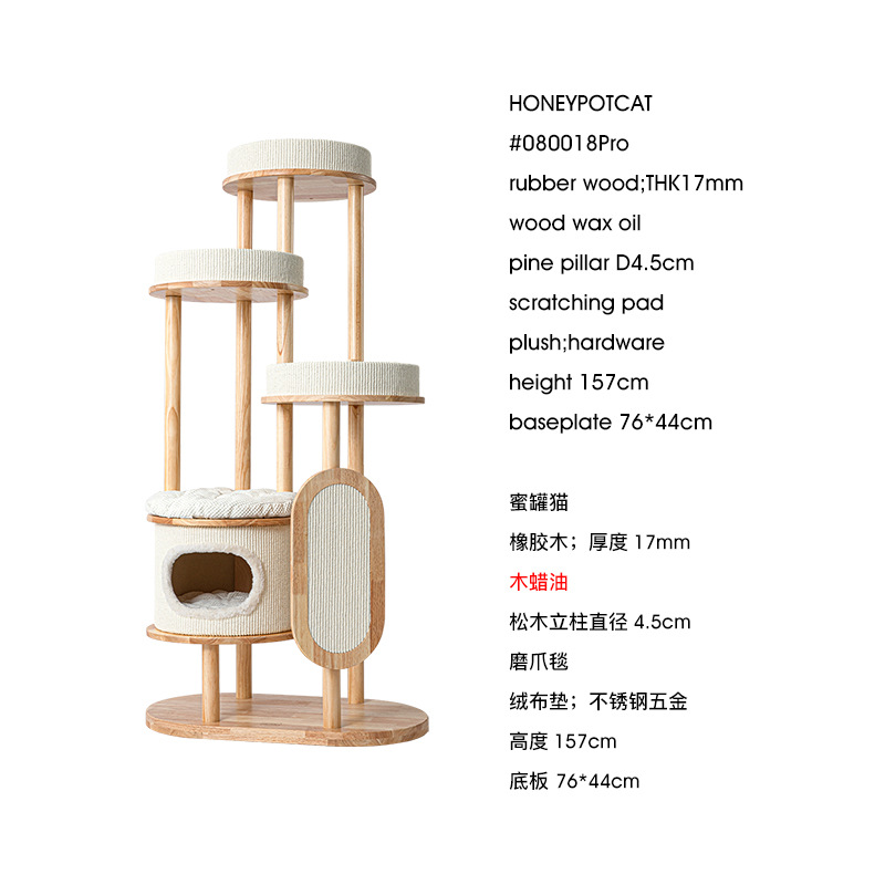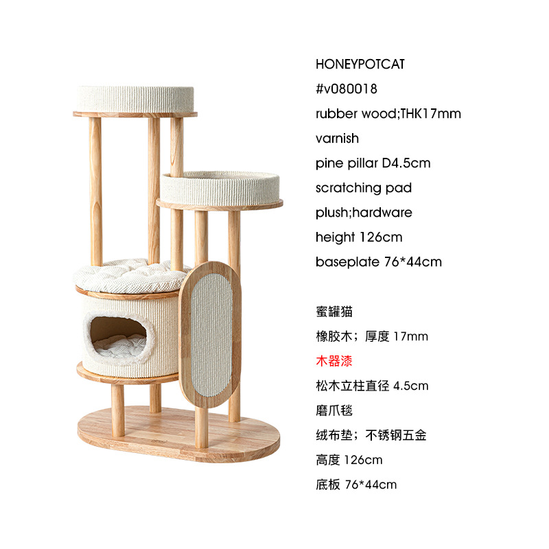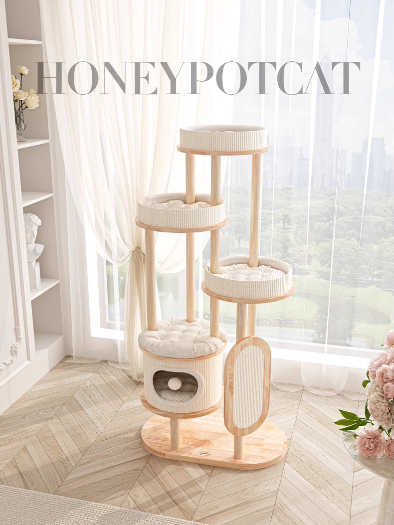 허니팟 고양이 클라이밍 프레임, 고양이 둥지, 고양이 트리, 원목 기둥 고양이 프레임, 가정용 고무나무 고양이 장난감 080018